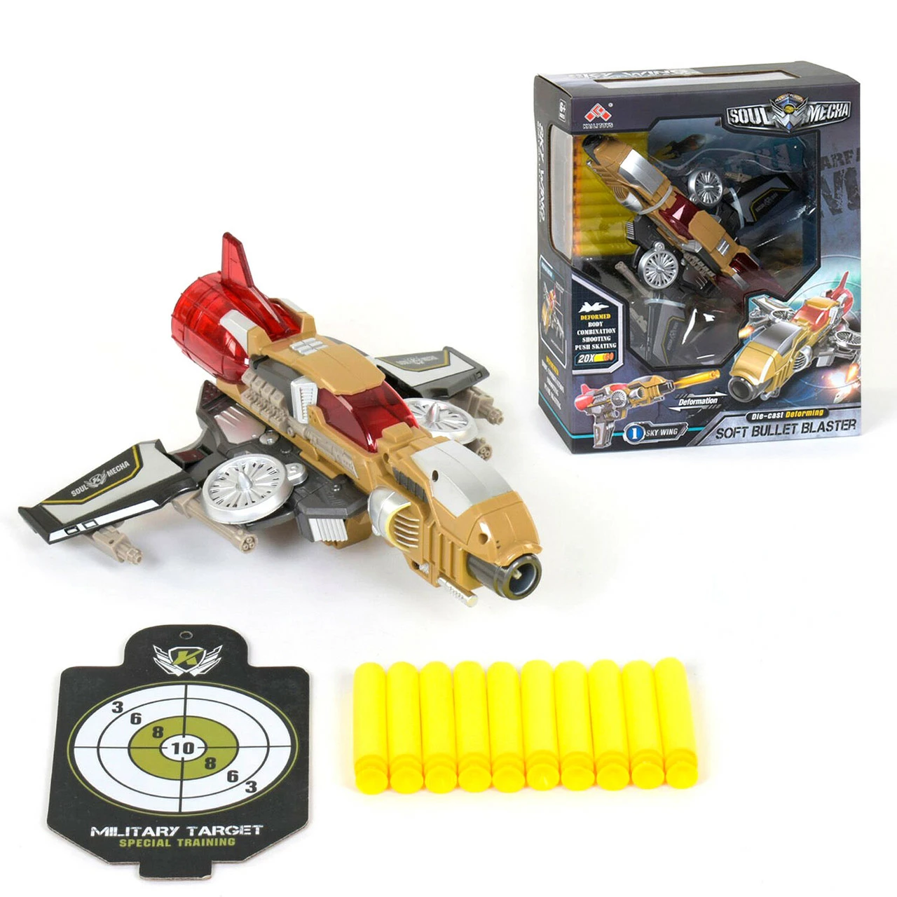 Трансформер Kimi трансформируется в крутой бластер. В комплекте с трансформером вы найдете 20 мягких патронов и мишень.
