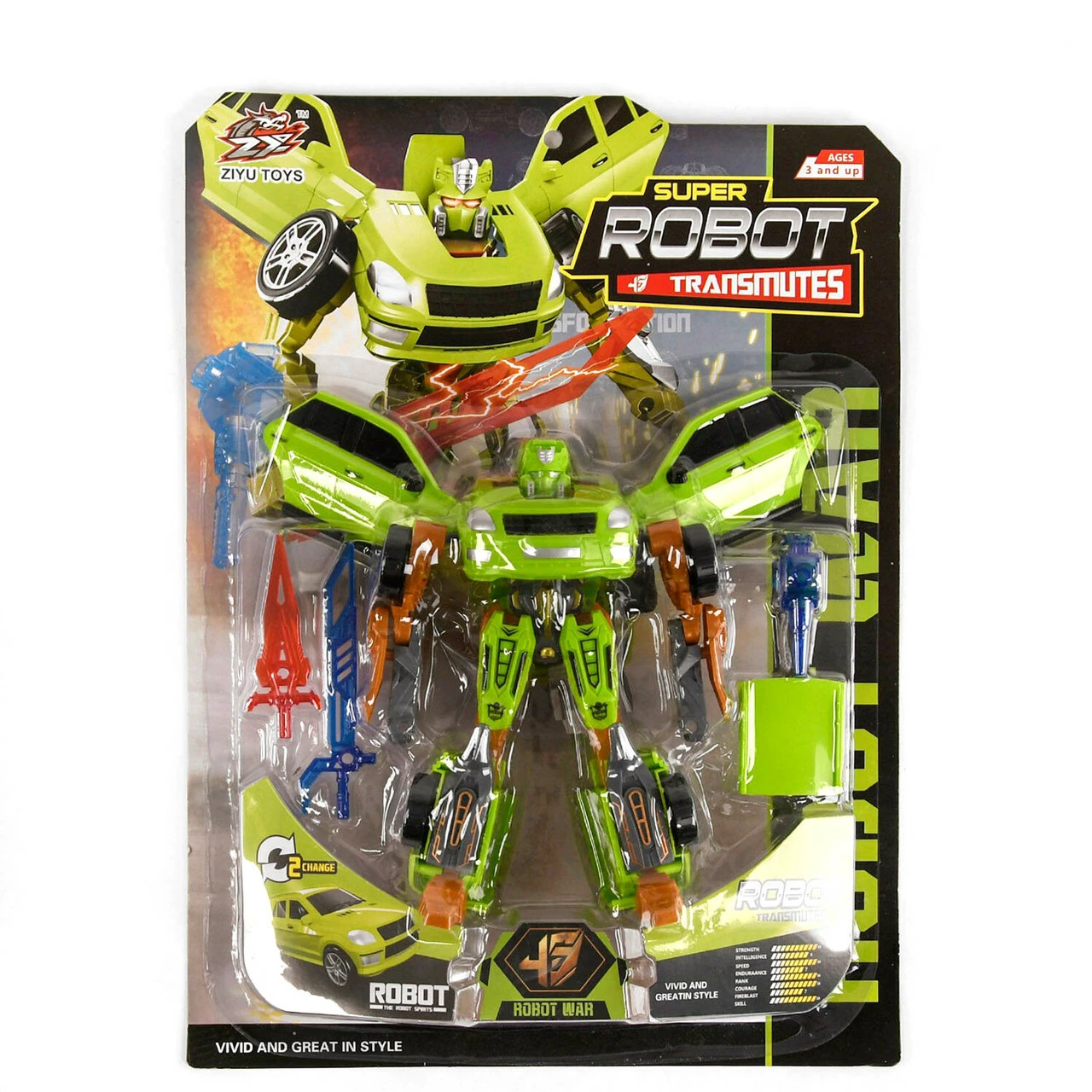 автомобиля. Красочный робот трансформер уже готов прийти на стражу