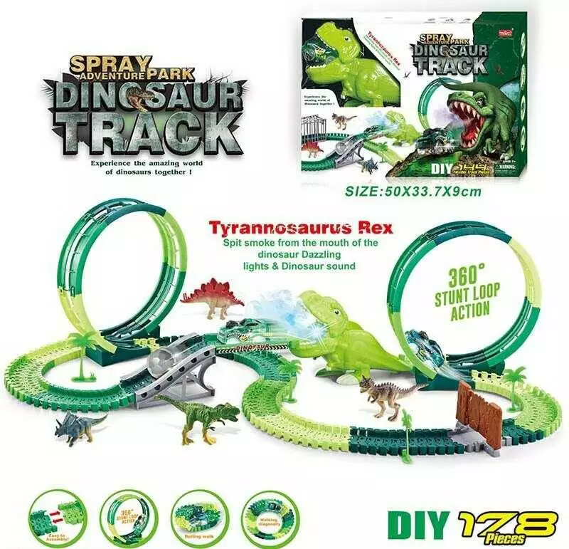 Трек 352 (18/2) світло, звук, дино майданчик, 178 елементів, довжина треку 488 см, аксесуари, в коробці