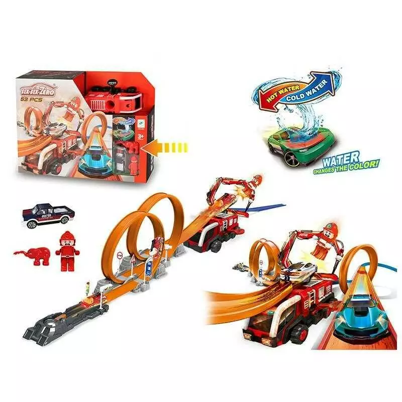 Трек 660 A 98 (24/2) металопластикова машинка, фігурка героя, наліпки, запускач, перешкоди для трюків, в коробці