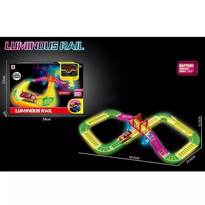 Трек 888-130 (60) люмінесцентний, машинка на батарейці, підсвічування, в коробці