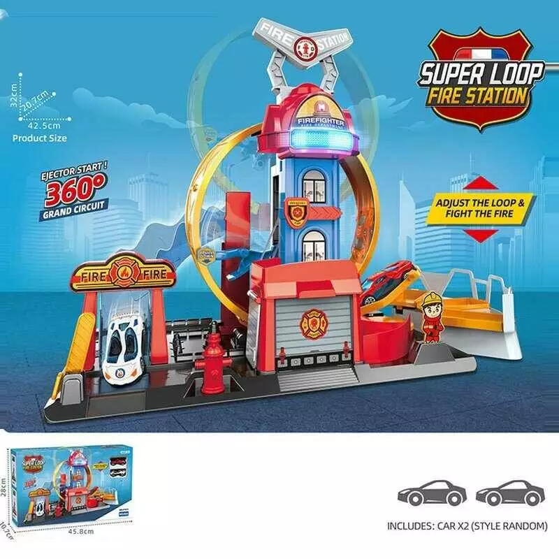 Трек E 7023 штрих=60441 (18/2) 2 металопластикові машинки, звуки, підсвічування, на батарейках, механічний запускач, в коробці