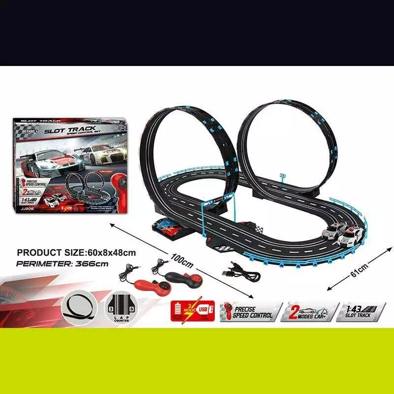 Трек на р/к JJ 206-1 (8) траса 61х100 см, світло, 2 машинки, 1:43, мертва петля, 2 пульти керув., підключ. проводом, від батарейок/мережі, в коробці