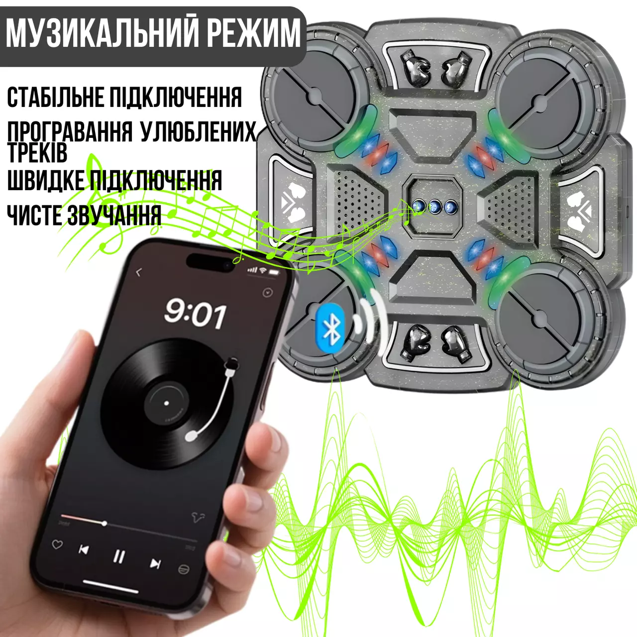 LED-підсвічуванням, що реагує на удари. Завдяки вбудованому