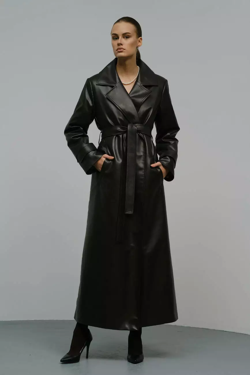 Тренч з екошкіри "DARK CHOCCO" демісезон
