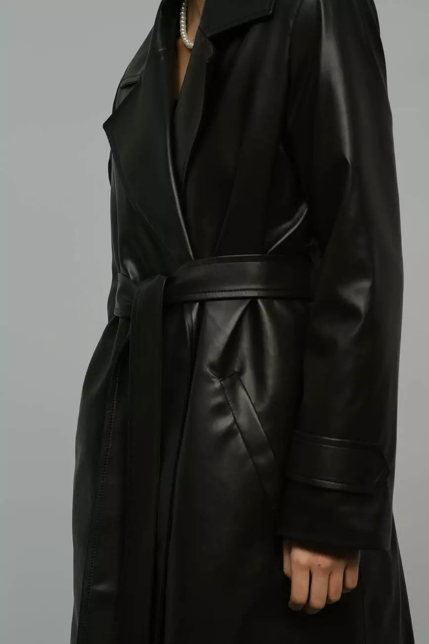 Базовий універсальний тренч з щільної екошкіри, який стане ідеальним верхнім шаром для образу на будь-який сезон. Адже його можна стильно поєднати як з буденним образом з кросівками та джинсами, так і з розкішним вечірнім під підбори.