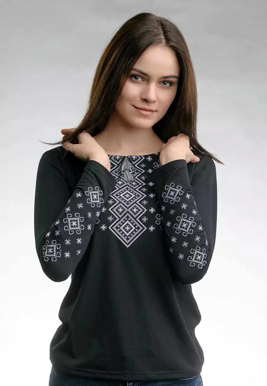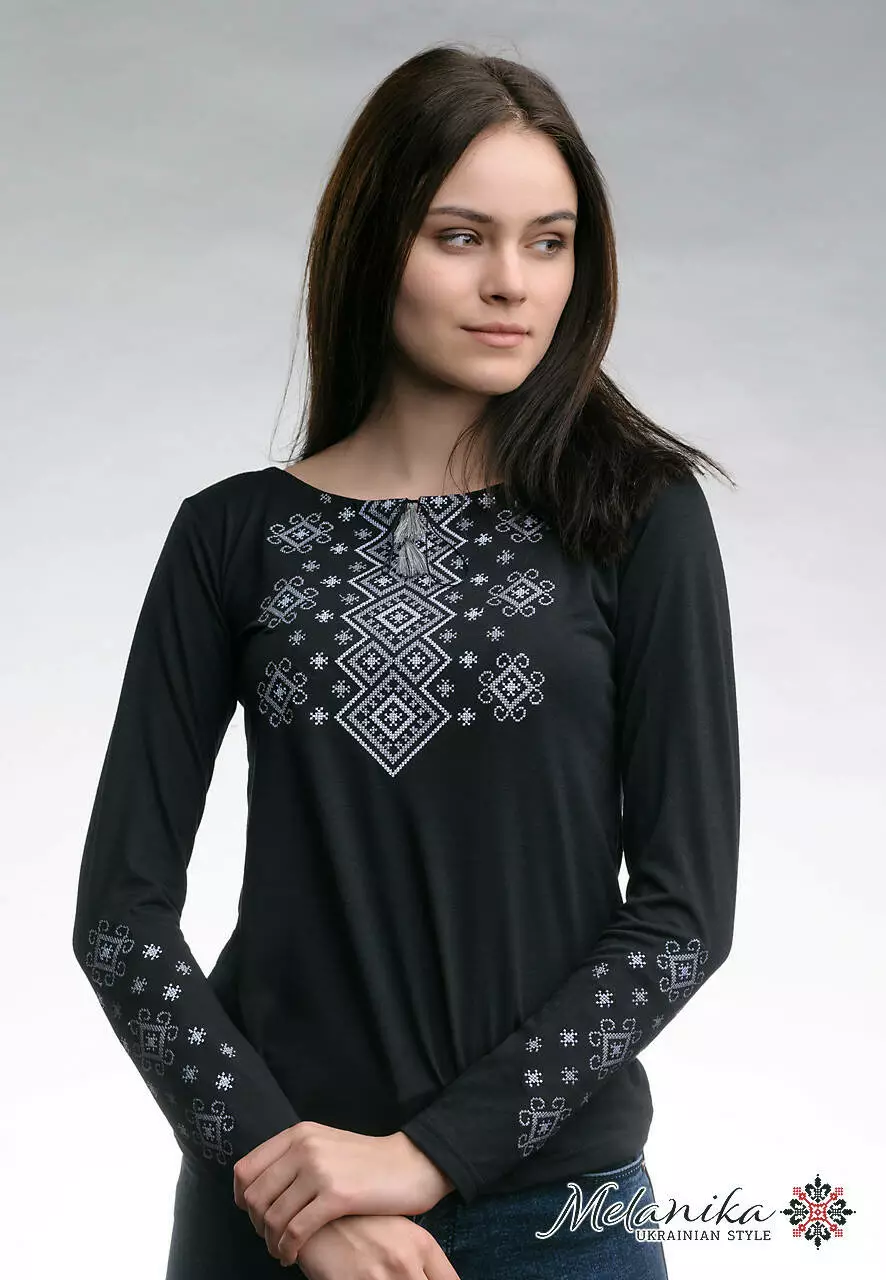 Кажуть, що чорний – колір істинної леді, а якщо чорний ще прикрашений вишивкою, то це поєднання подарує вам відчуття справжної королеви. Саме такі відчуття подарує вам наша вишита футболка на довгий рукав «Сірий карпатський орнамент» вже після першої примірки. Ця вишиванка виглядає стильно, елегантно, вишукано, руйнує стереопити про традиційну вишивку і стане родзинкою будь-якого образу. Футболка прикрашена геометричним орнаментом в пастельних тонах з якісних ниток, що не втратять свого кольору при частому носінні і пранні. Тканина з еластану та віскози не розтягнеться та не вилиняє. Довершуй свій образ витончено – обирай вишивану футболку «Сірий карпатський орнамент» бренду «Меланіка».