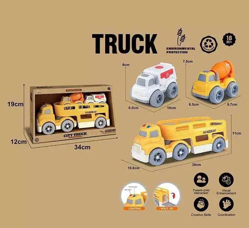 Трейлер 921-14 (36/2) підсвічування, кумедні звуки, мелодії, звуки транспорту, довжина 30 см, 2 спецтехніки, рухомі елементи, біопластик, в коробці