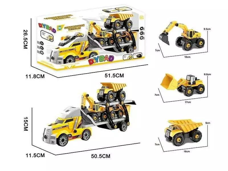 Трейлер MY 4104 (18) “Спецтехніка”, звук, підсвічування, 3 будівельні машинки, конструктор, викрутка, в коробці