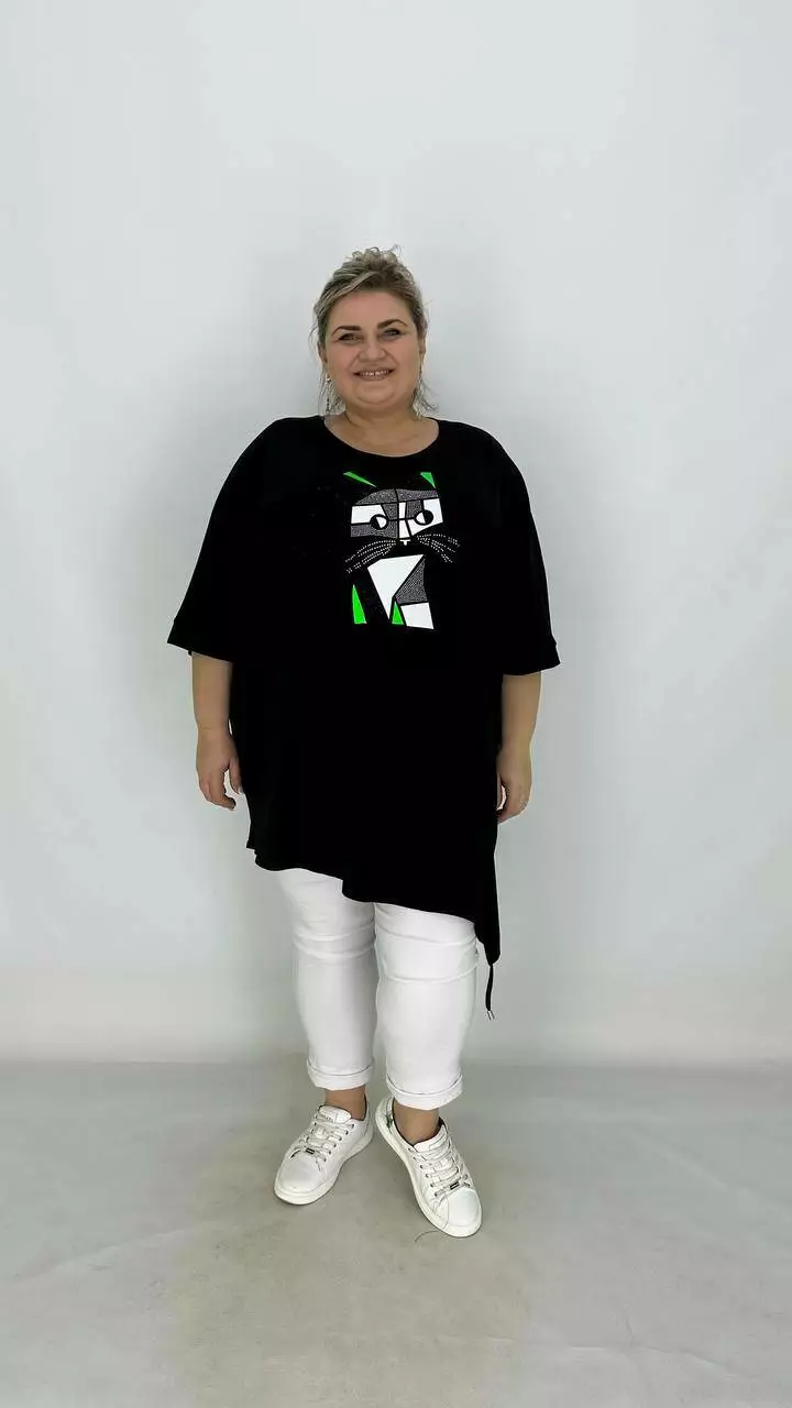 Трикотажна подовжена вільна туніка "Котик" з якісним накатом 62-68 70-74