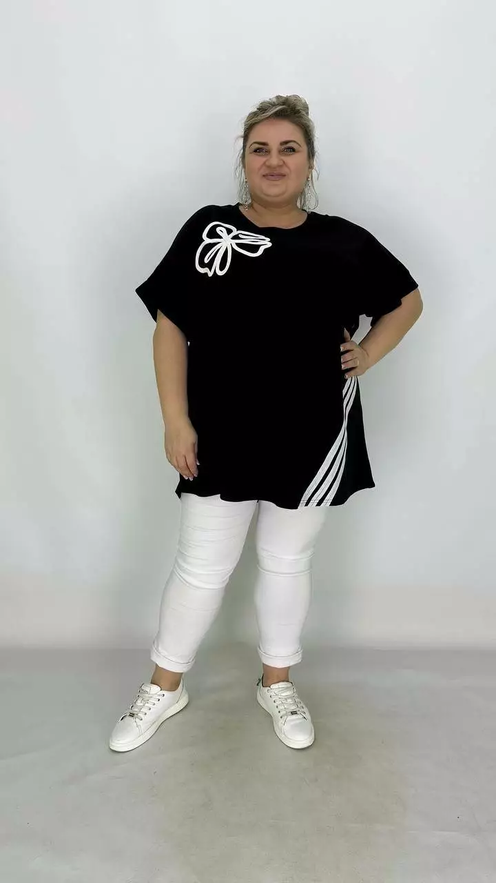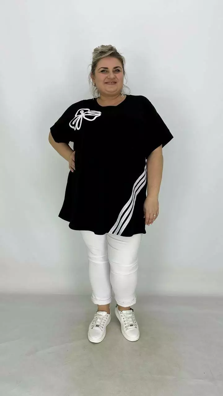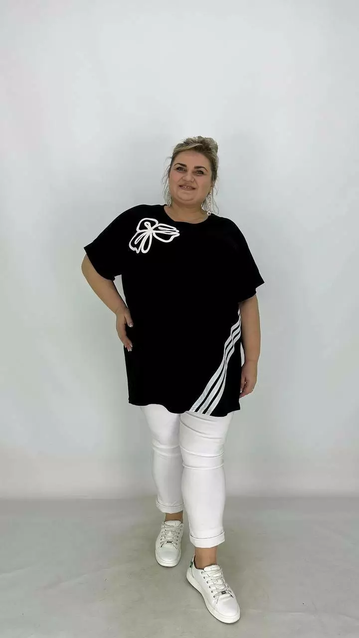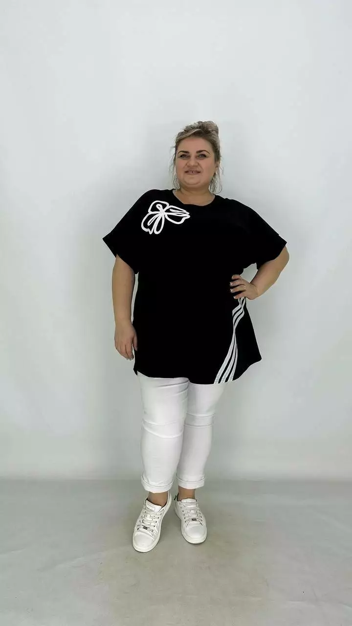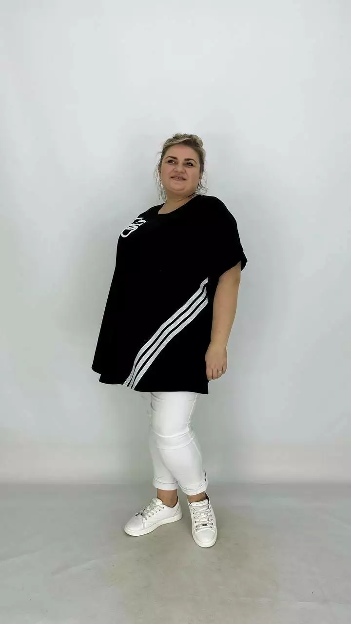 Вільний силует зі спущеним плечем, прикрашена лампасами та