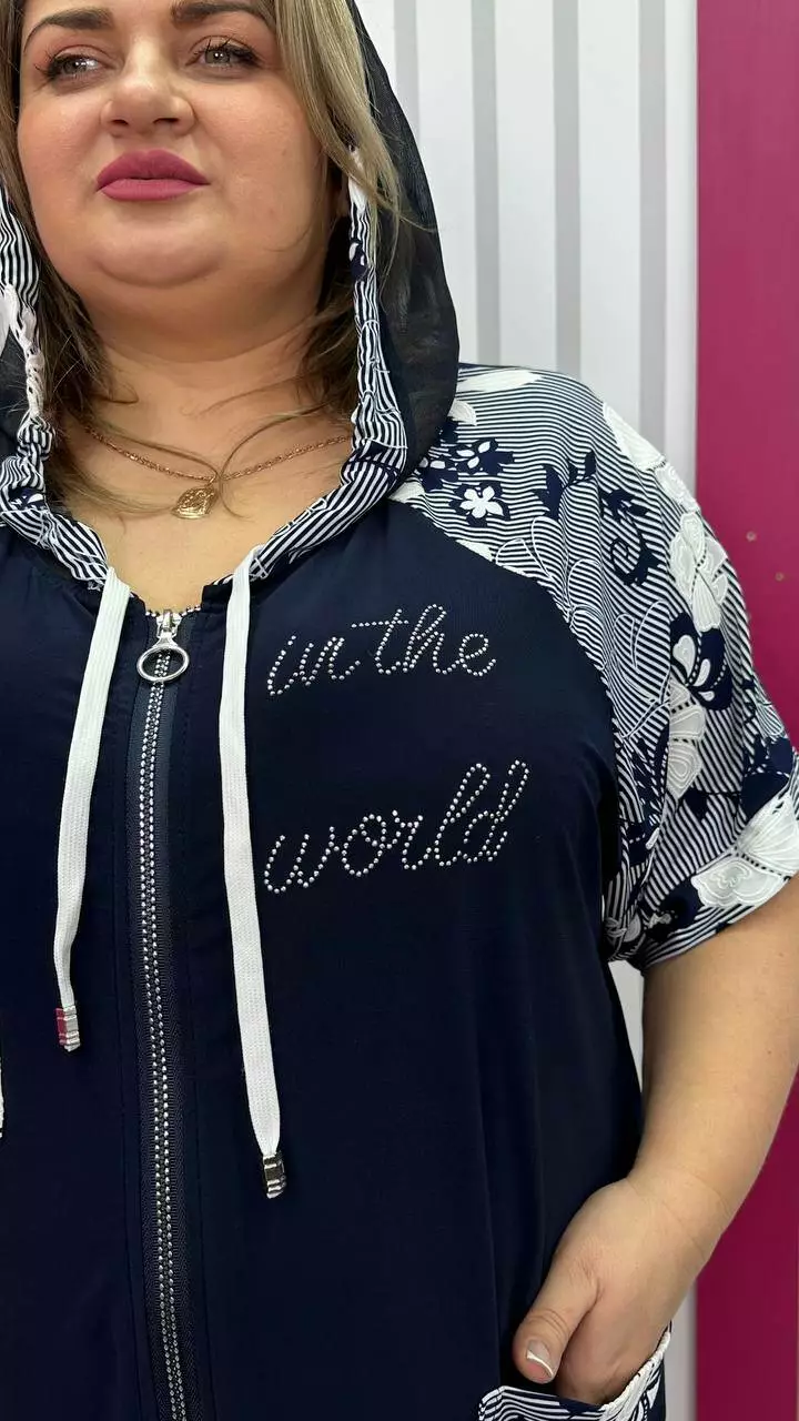 Кофта: Обсяг грудей до 160; Об'єм талії до 152; Об'єм стегон до 160; Довжина виробу 85; Довжина плеча 39; Ширина манжети 54-60.