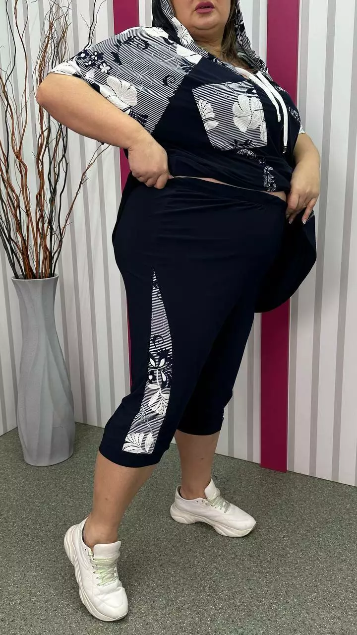 Трикотажний костюм туніка+капрі "Фокус 2" великого розміру 62-64 66-68 70-72 74-76