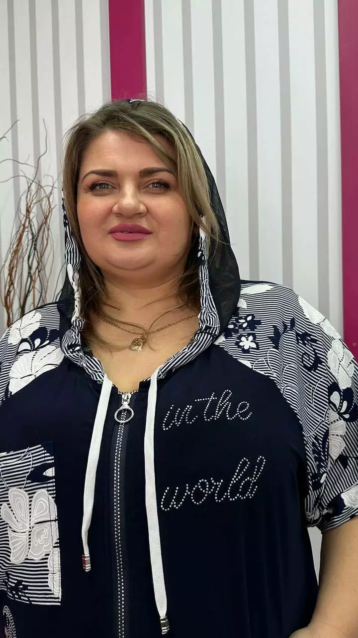 Кофта: Обсяг грудей до 150; Об'єм талії до 140; Об'єм стегон до 150; Довжина виробу 80; Довжина плеча 38; Ширина манжету 52-56.