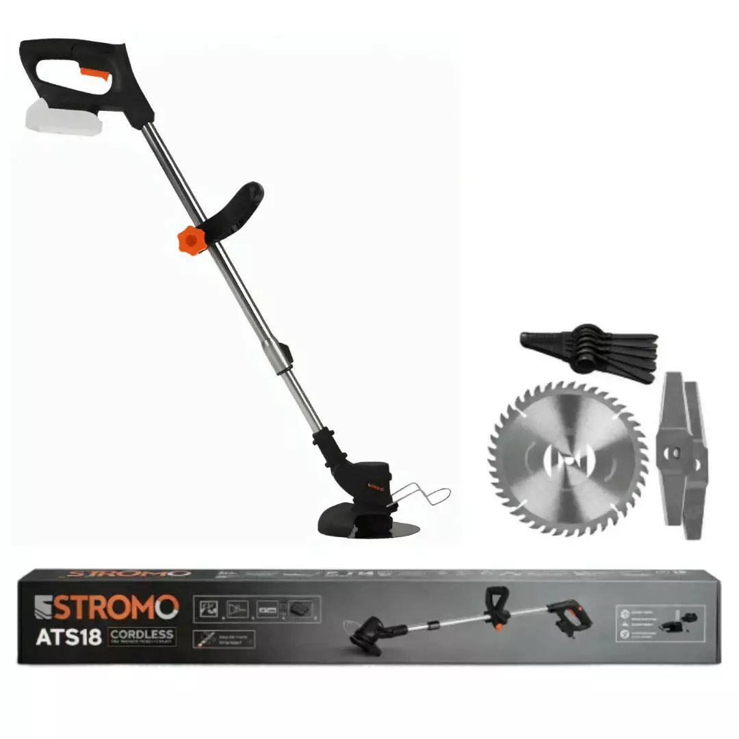 Садовий акумуляторний тример Stromo ATS-18 20 V з ножем, 2 АКБ, потужний і компактний інструмент