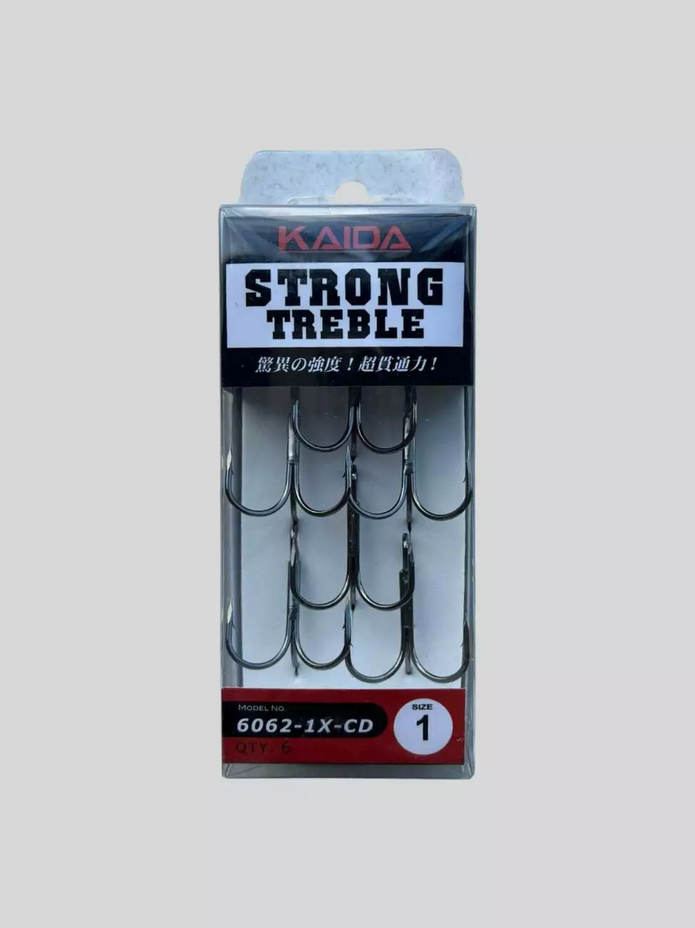 Суперміцний трійник KAIDA Strong Treble у розмірі 1 — ідеальний варіант для великих воблерів та приманок. Завдяки посиленій сталі та надгострим жаліям забезпечує максимальну надійність під час боротьби з трофейною рибою. Модель 6062-1X-CD відома своєю витривалістю та довговічністю.