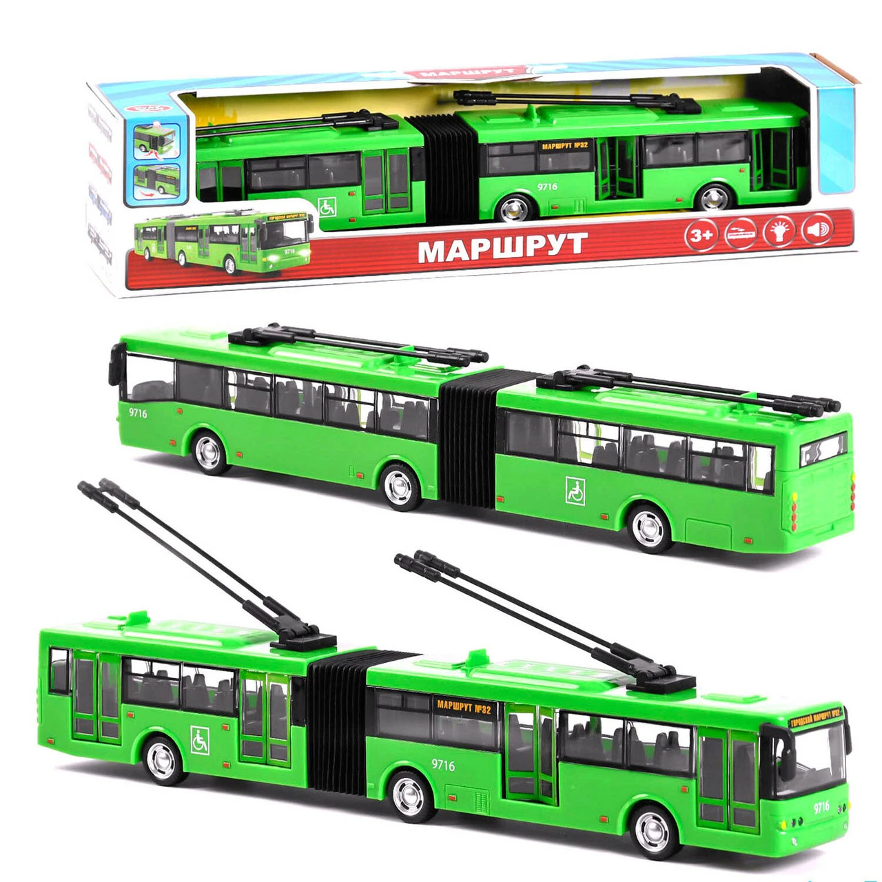 Модель городского транспорта выполнена в масштабе 1:43. Троллейбус