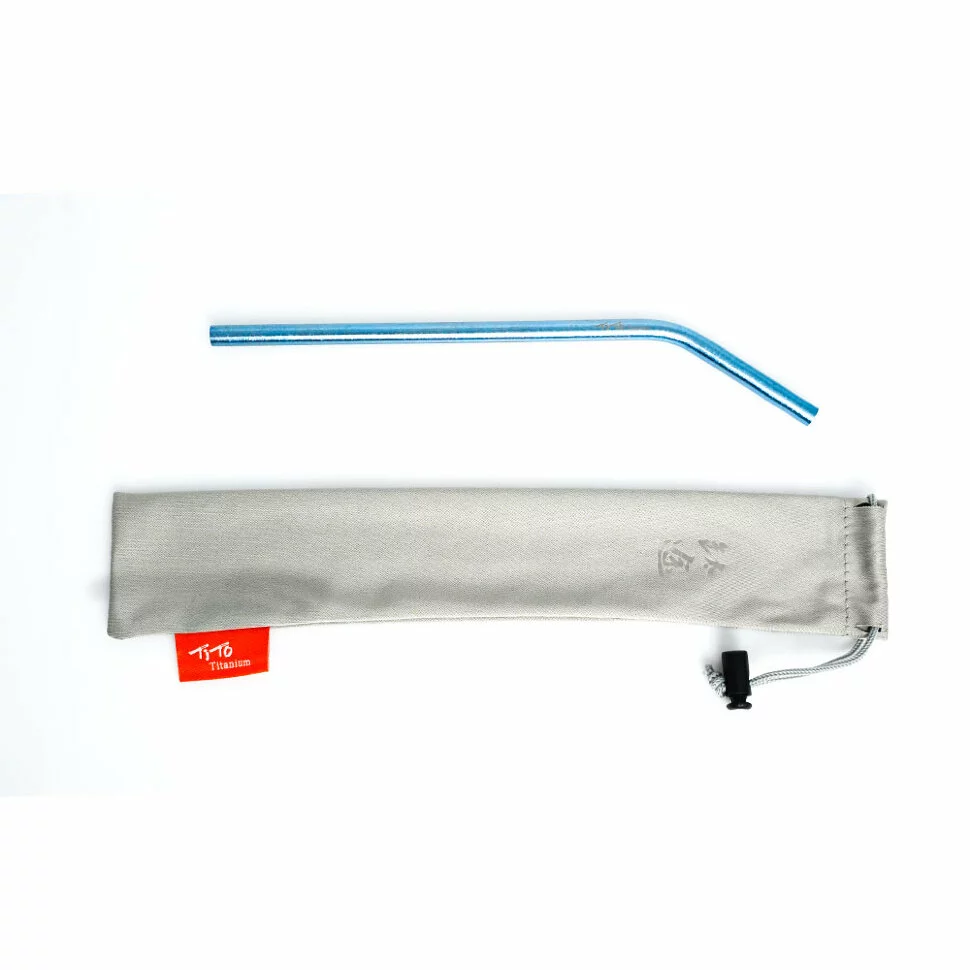 Трубочка вигнута з титану TiTo Titanium синя з мішечком