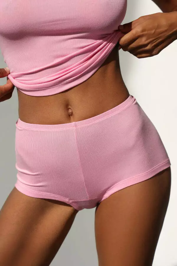 Тканина в рубчик додає виробу текстурності та еластичності, що забезпечує відмінну посадку та гнучкість. Брифи щільно прилягають до тіла, не стискаючи рухів і гарантуючи комфорт протягом усього дня. Рожевий колір додає виробу нотки романтики та ніжності, підкреслюючи жіночність та легкість вашого образу.