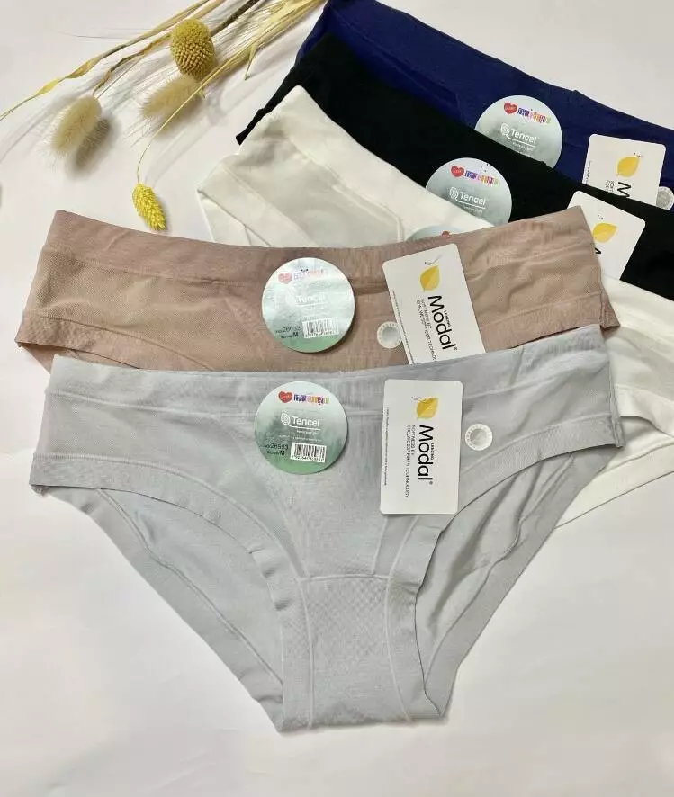 Жіночі трусики із мякого модалу.Гарні приглушені кольори,прикрашені кружевом. В упаковці 12 шт. різних кольорів (зразки кольорів на фото)