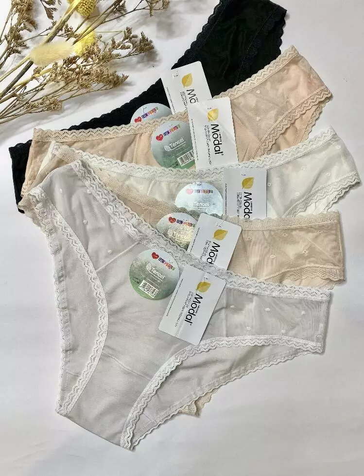 Жіночі трусики із мякого модалу.Гарні приглушені кольори,прикрашені кружевом. В упаковці 12 шт. різних кольорів (зразки кольорів на фото)