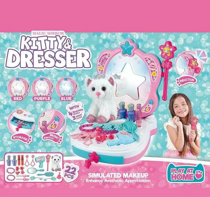 Трюмо 661-3001 (16) розмір: 27х24х32 см, звук, зміна підсвічування, муляж косметики, аксесуари, м’яка іграшка - котик, в коробці