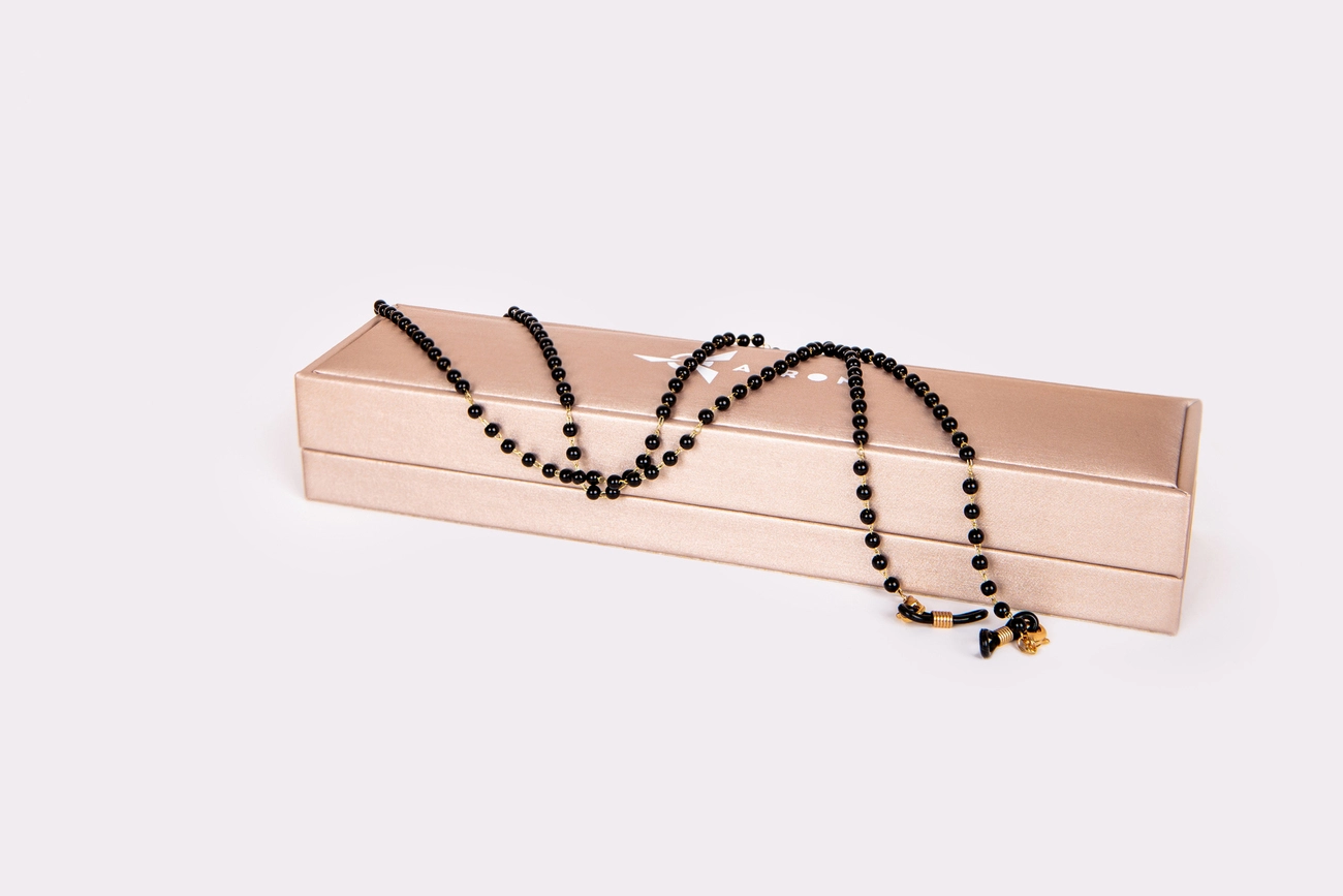 Быть в тренде, следить за модой, создавать уникальные и неповторимые образы – все это и многое другое доступно, благодаря черно-золотой цепочке для очков. Универсальная модель подходит под любой стиль. Модный и изящный аксессуар идеально дополняет солнцезащитные очки и придает яркий акцент классическим.