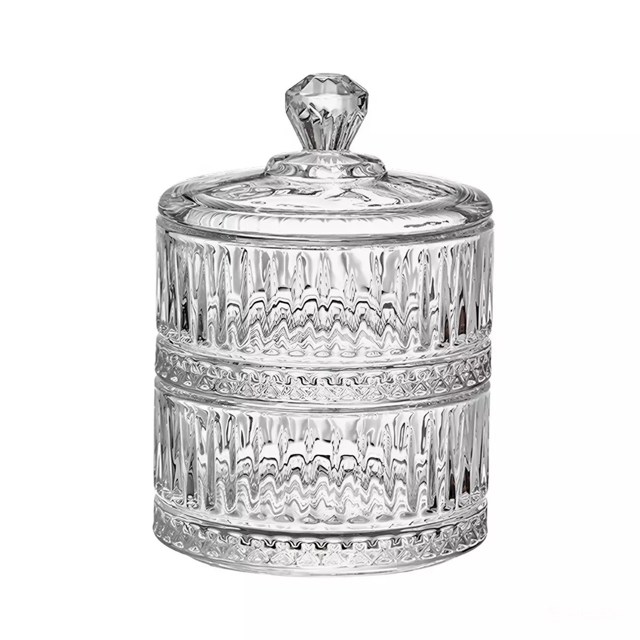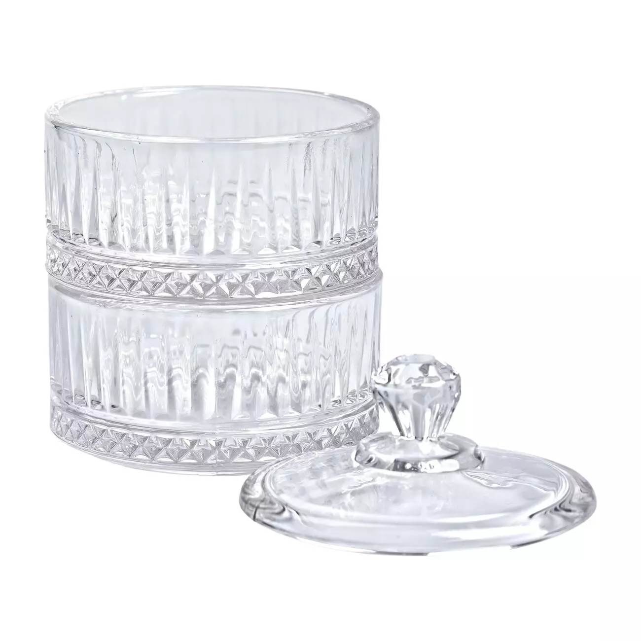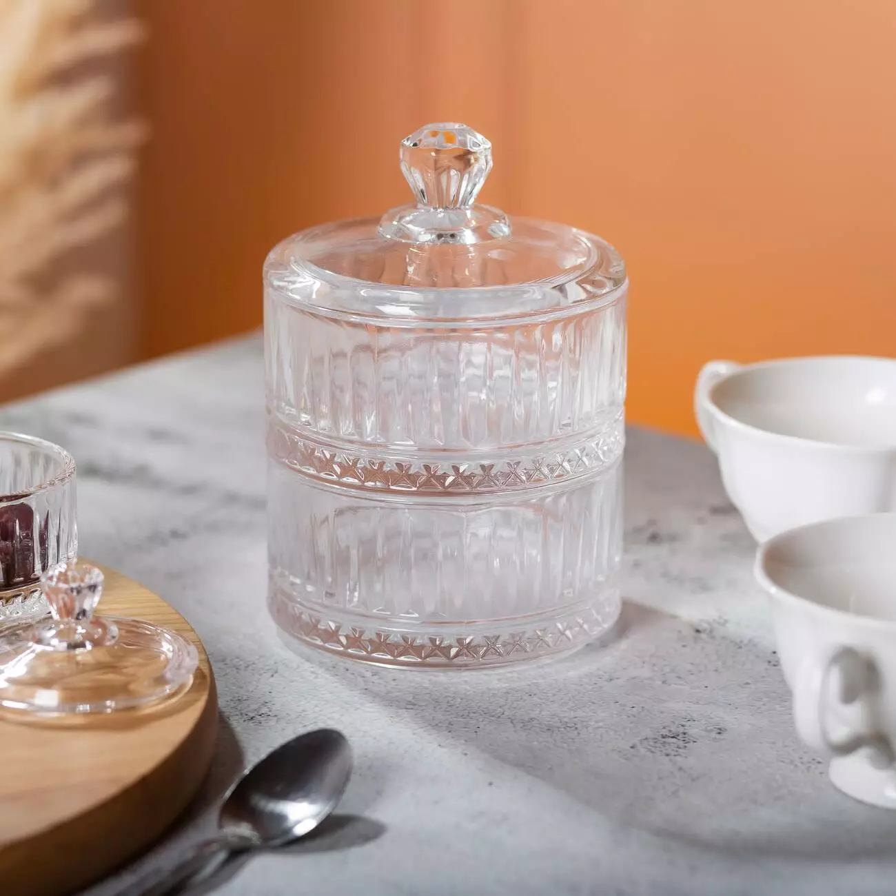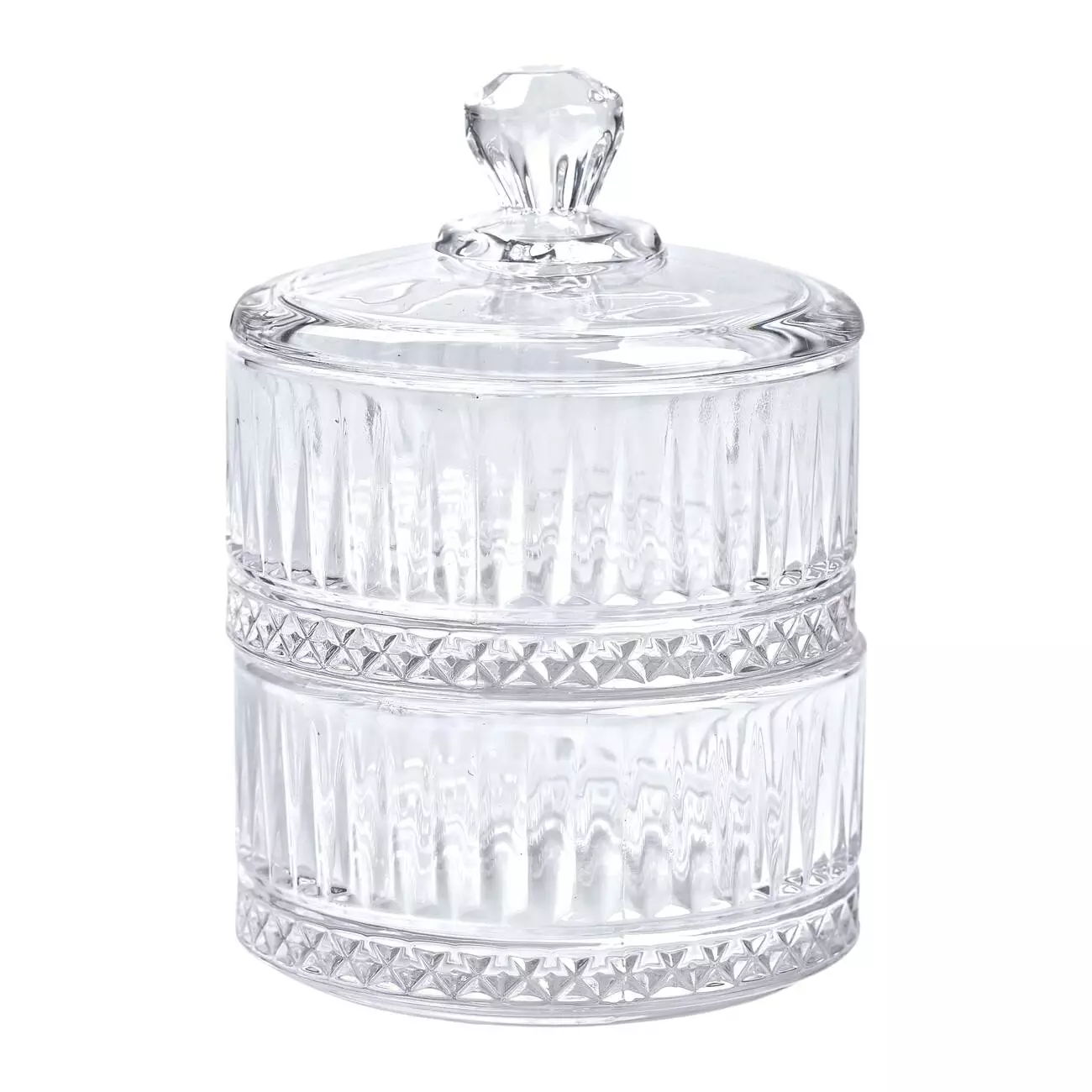 Цукерниця дворівнева скляна має загальну висоту 15 см та діаметр