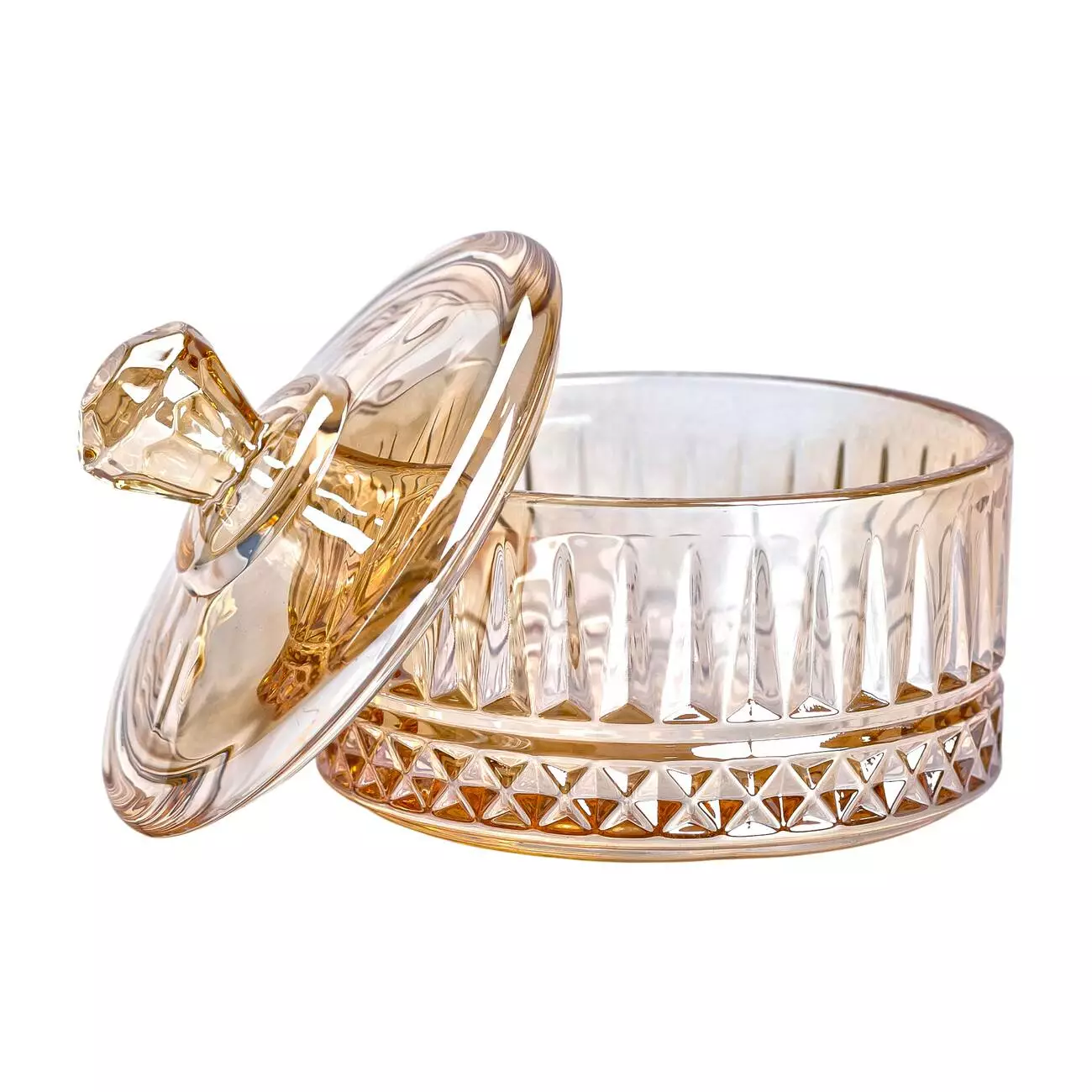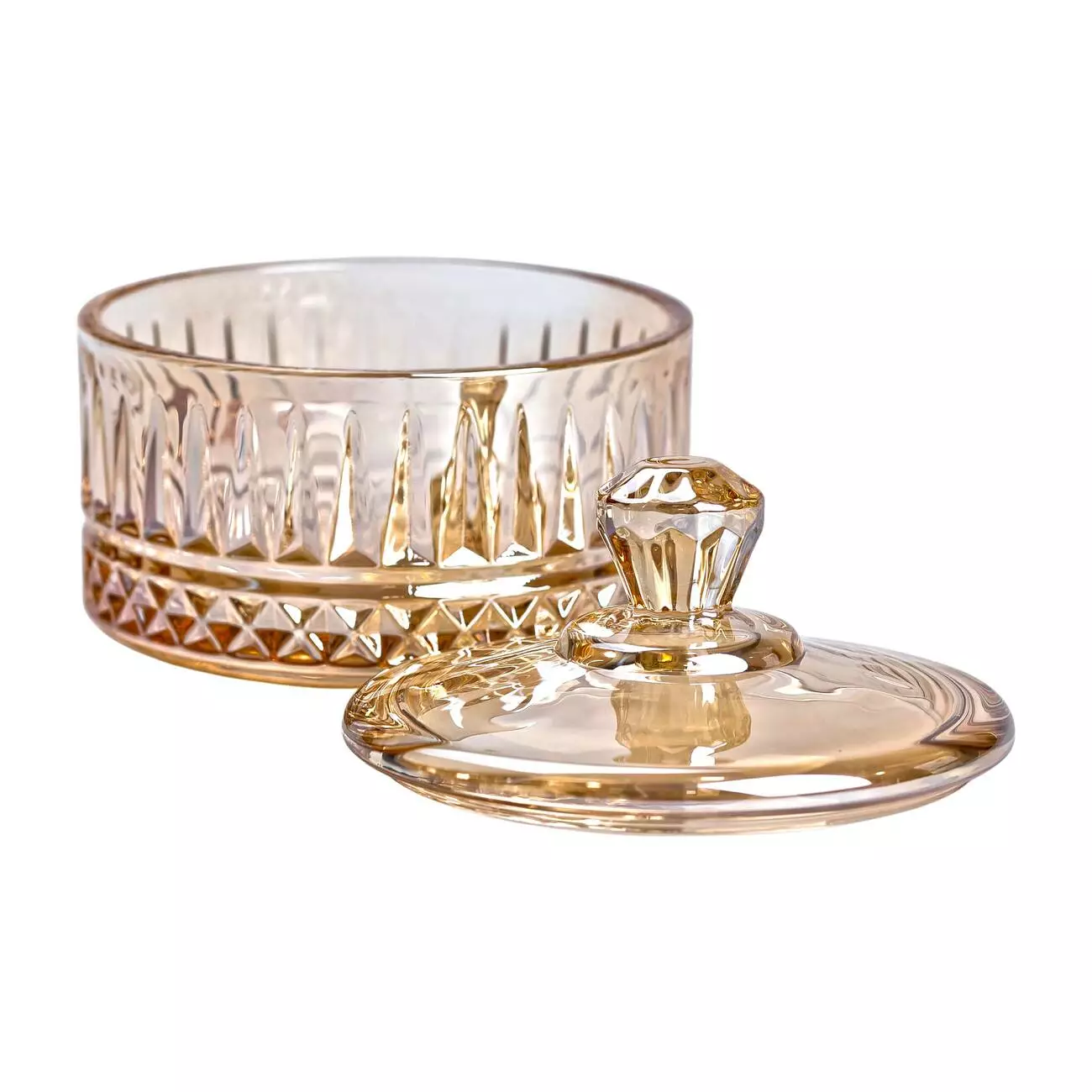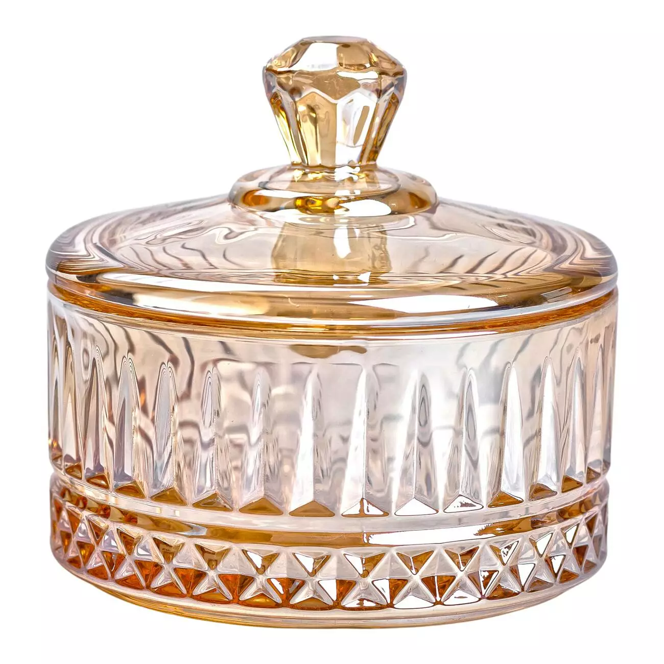 Цукерниця дворівнева скляна має висоту 10 см і діаметр 10 см.