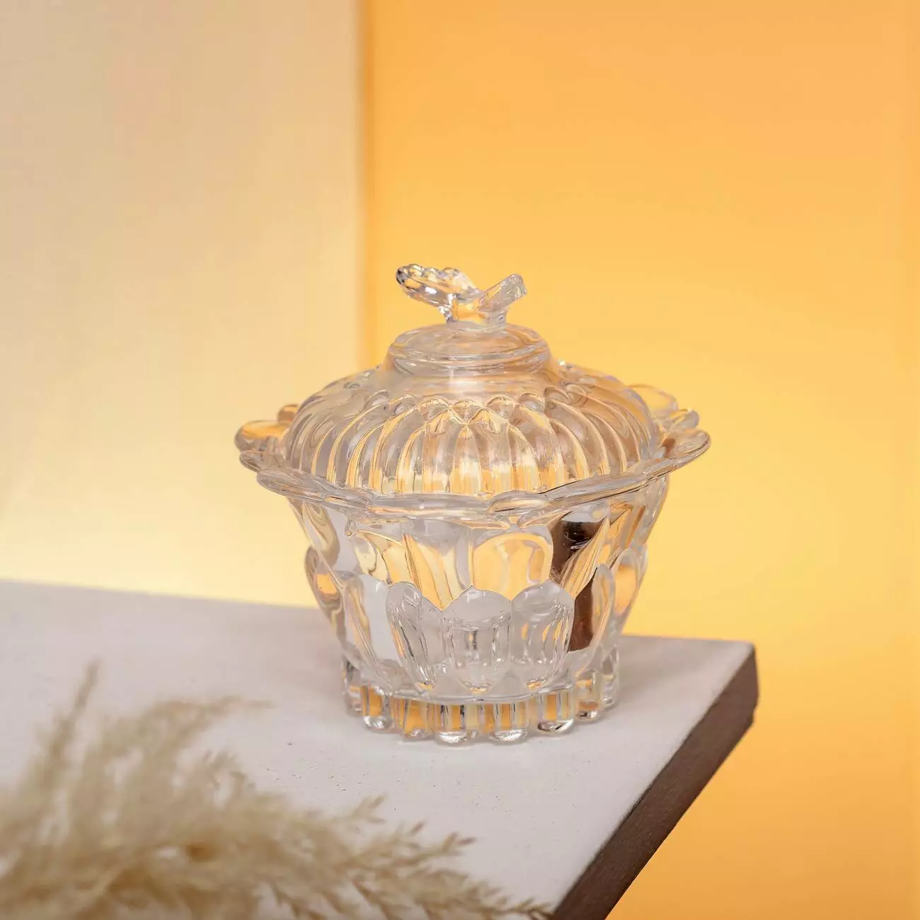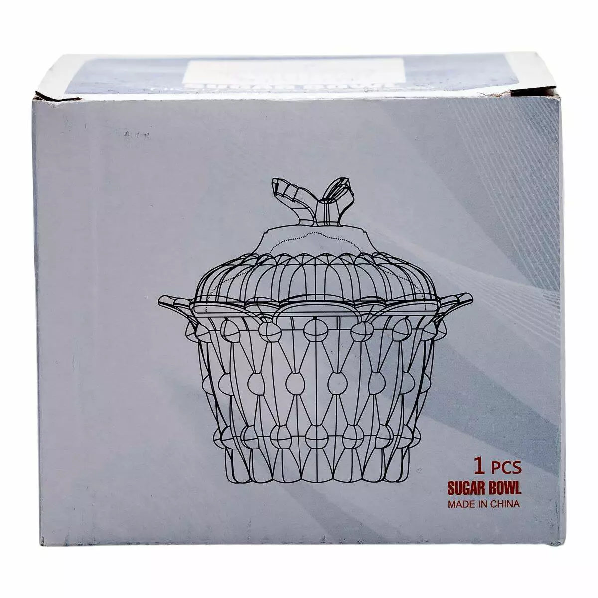 Цукорниця з кришкою Pasabahce виготовлена з прозорого кришталевого скла, що підкреслює її декоративну фактуру та дозволяє бачити вміст. Поверхня оздоблена рельєфним візерунком, який візуально підкреслює об’єм і створює гру світла. Кришка щільно прилягає до країв і має декоративний елемент зверху для зручного знімання.