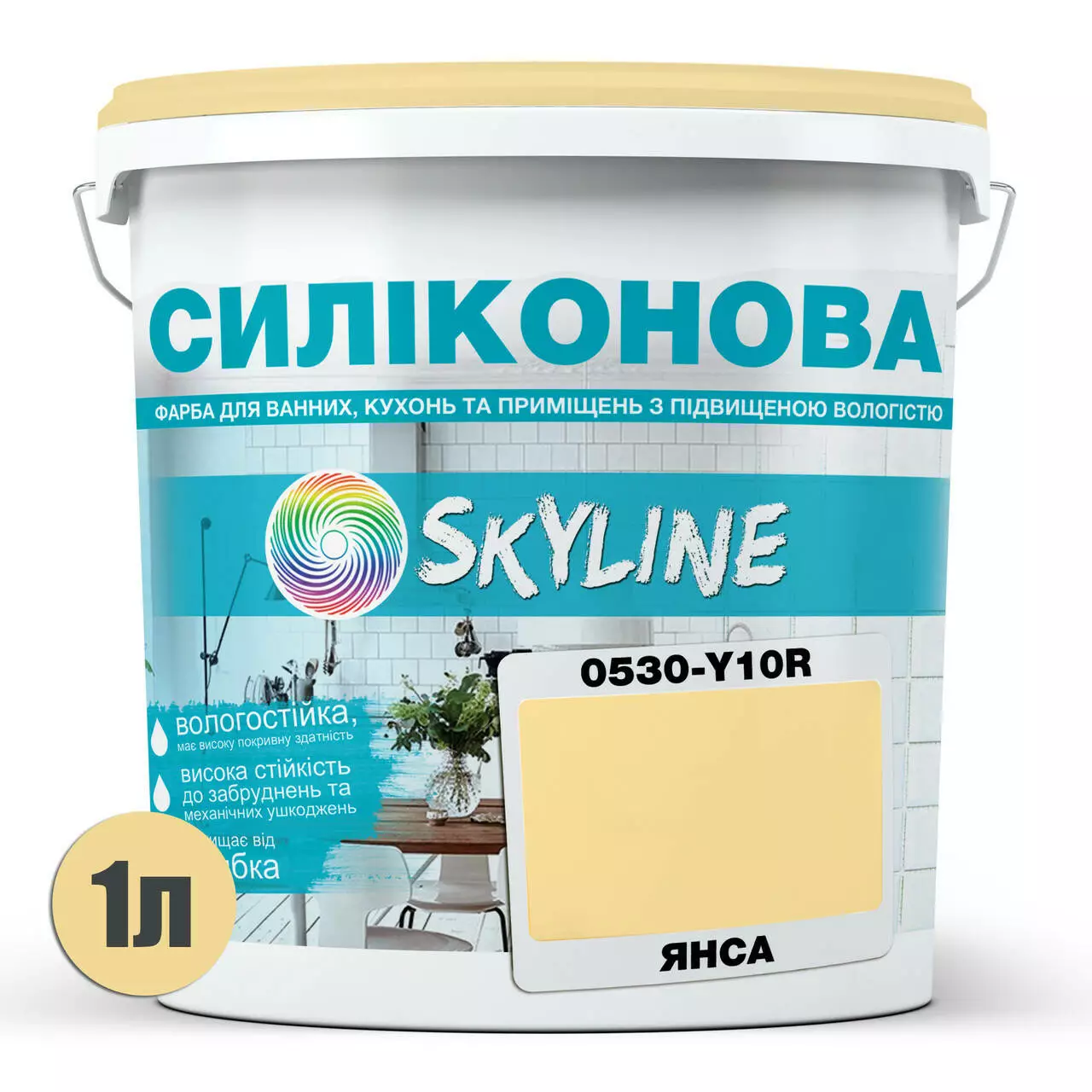 Цветная Краска СИЛИКОНОВАЯ Skyline для влажных помещений 0530-Y10R Янса 1л