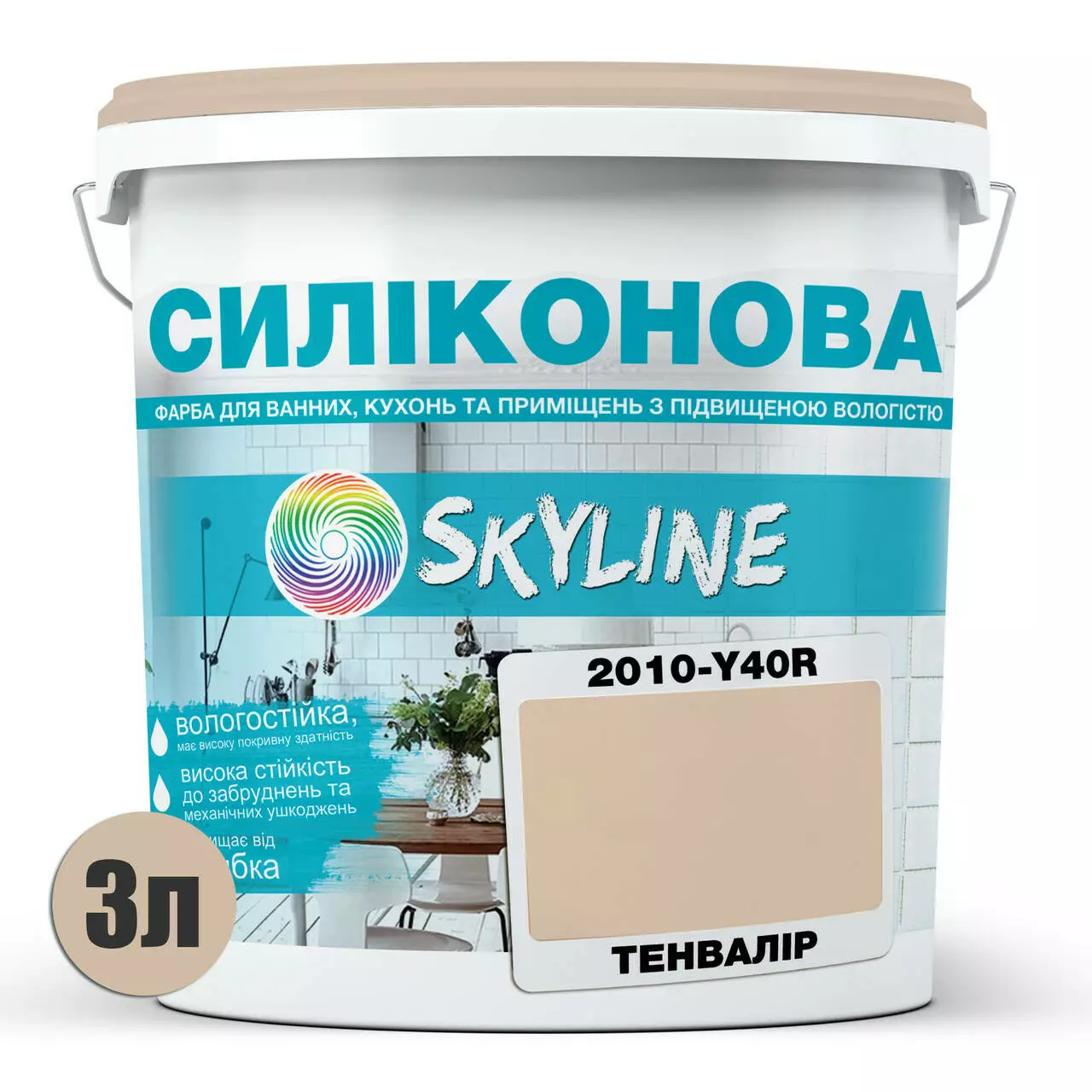 Цветная Краска СИЛИКОНОВАЯ Skyline для влажных помещений 2010-Y40R Тенвалир 1л