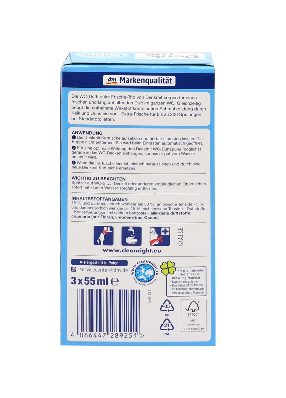 Туалетний блок Denkmit Frische Trio - це комплект з трьох туалетних