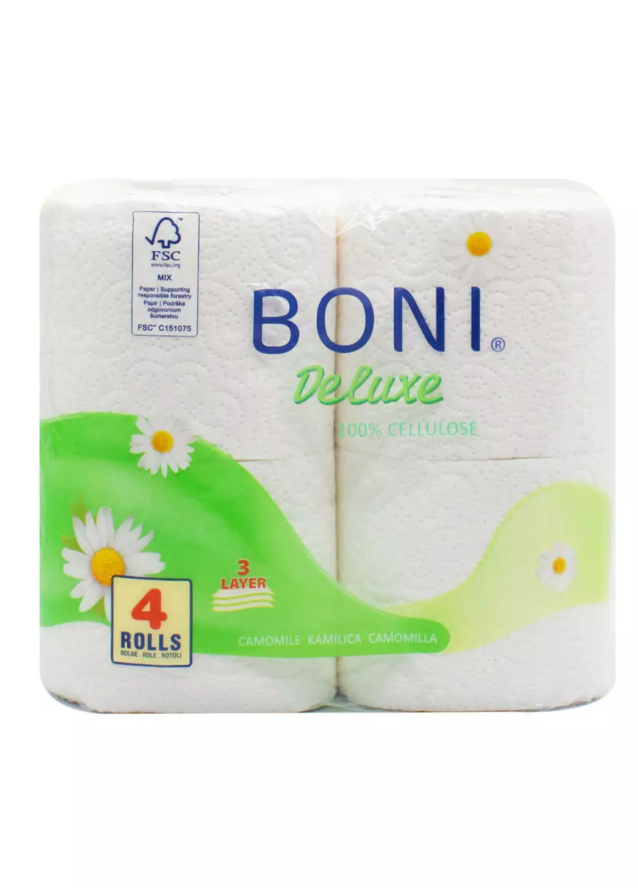 Тришаровий туалетний папір Boni DeLuxe відмінно підійде для гігієни