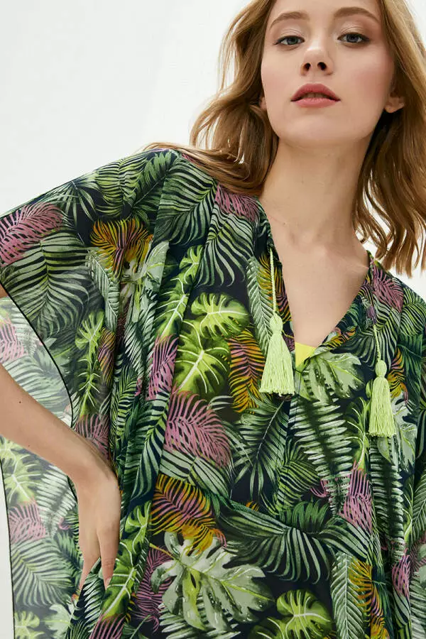 Напівпрозорий шифон забезпечує не лише комфорт у спекотну погоду, але й додає нотку загадковості, залишаючи деяку інтригу. Легкий, невагомий матеріал дозволяє шкірі дихати, що робить туніку ідеальною для пляжного відпочинку та прогулянок біля води. Вона не лише захищає від сонця, але й надає впевненості, дозволяючи почуватися комфортно й виглядати стильно в будь-якій ситуації.
