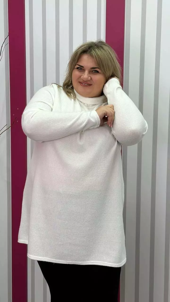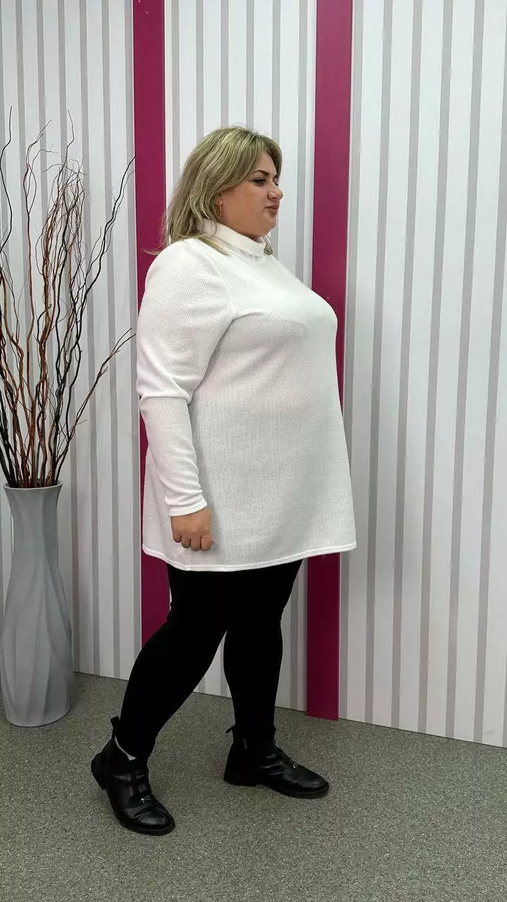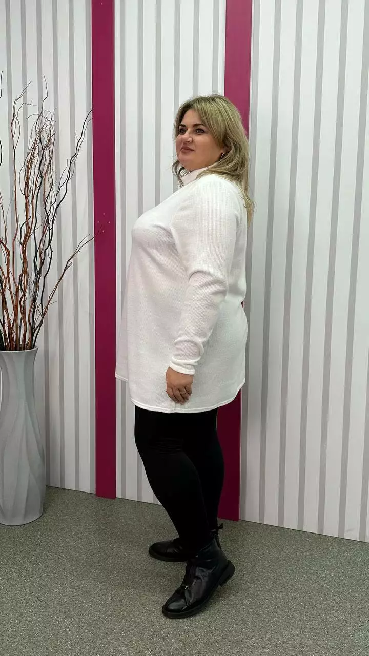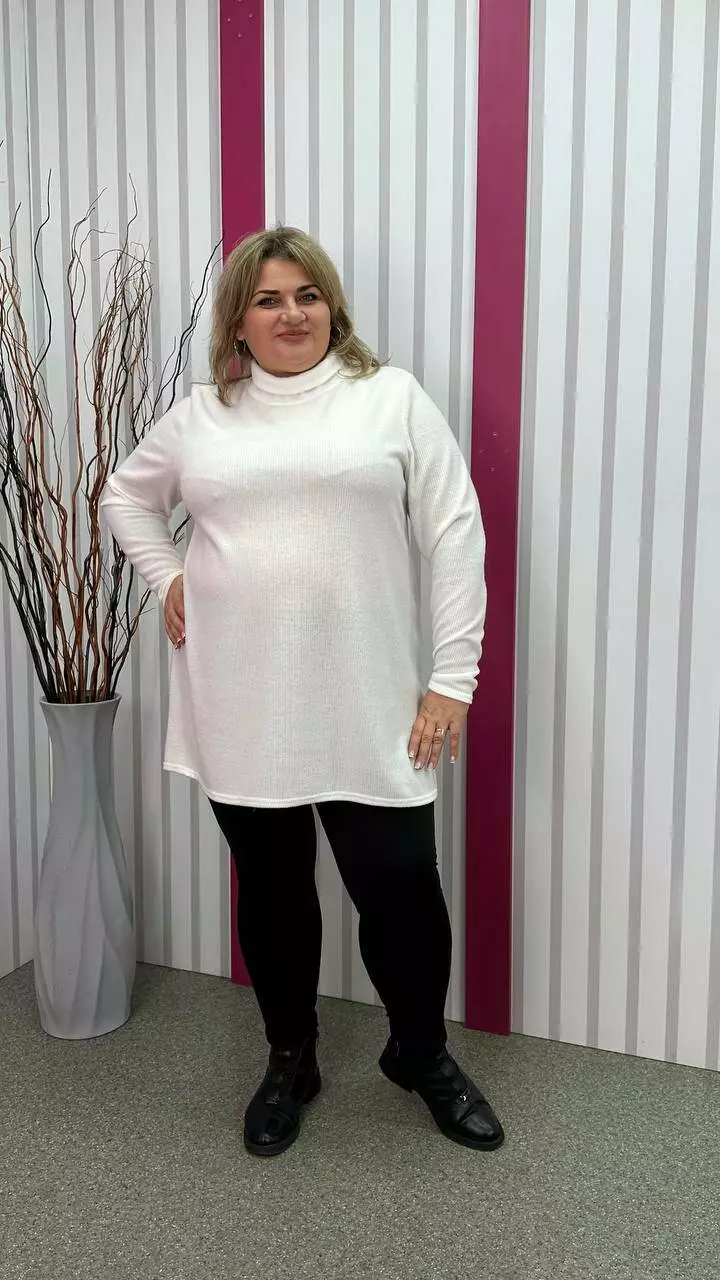 з гарною розтяжністю, дуже м'яка та приємна до тіла. Силует вільний А-подібний, довгий рукав