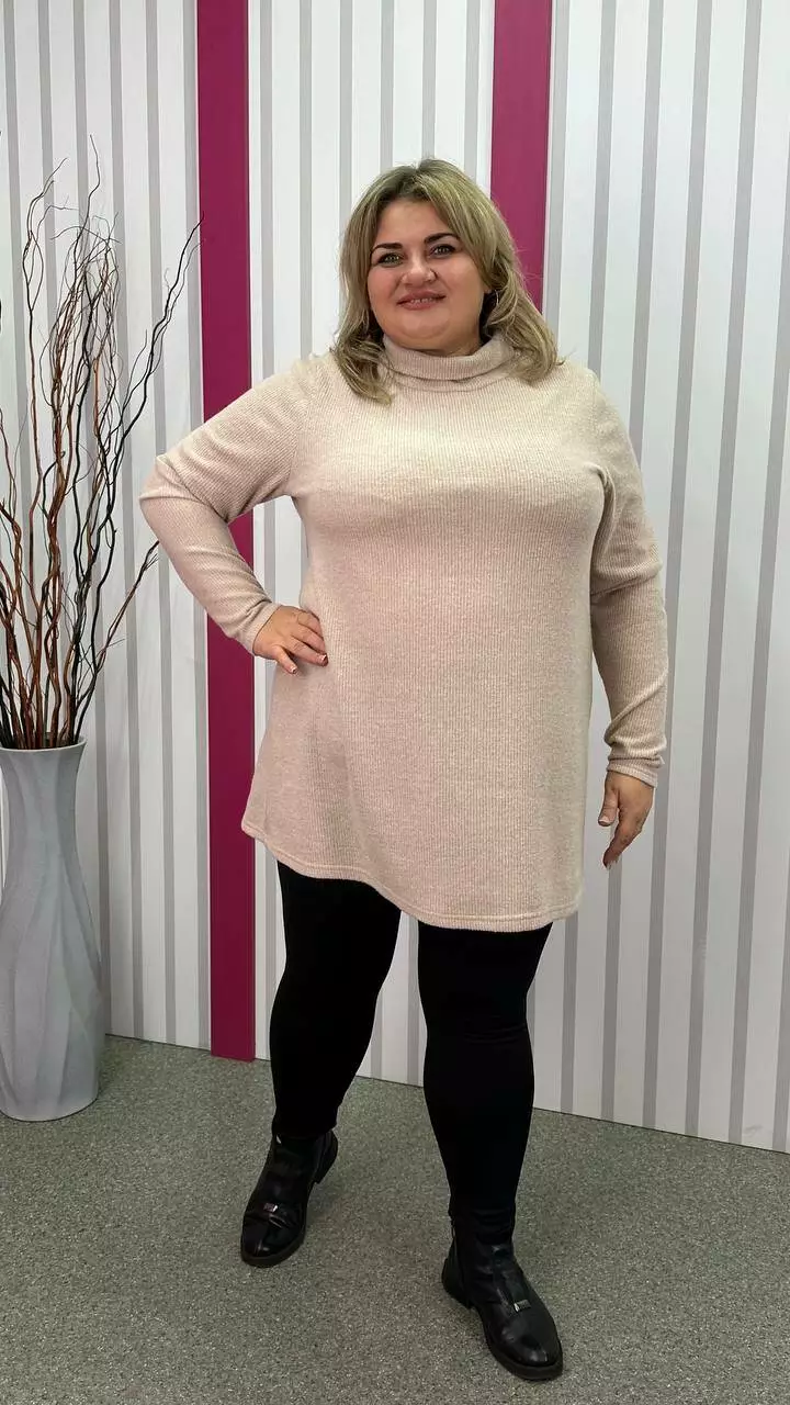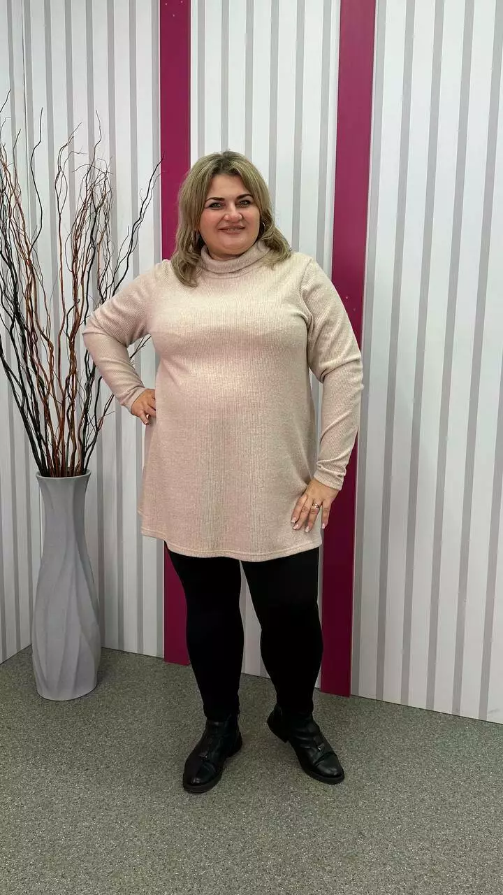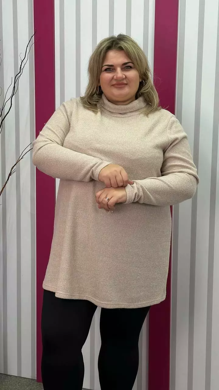 з гарною розтяжністю, дуже м'яка та приємна до тіла. Силует вільний А-подібний, довгий рукав