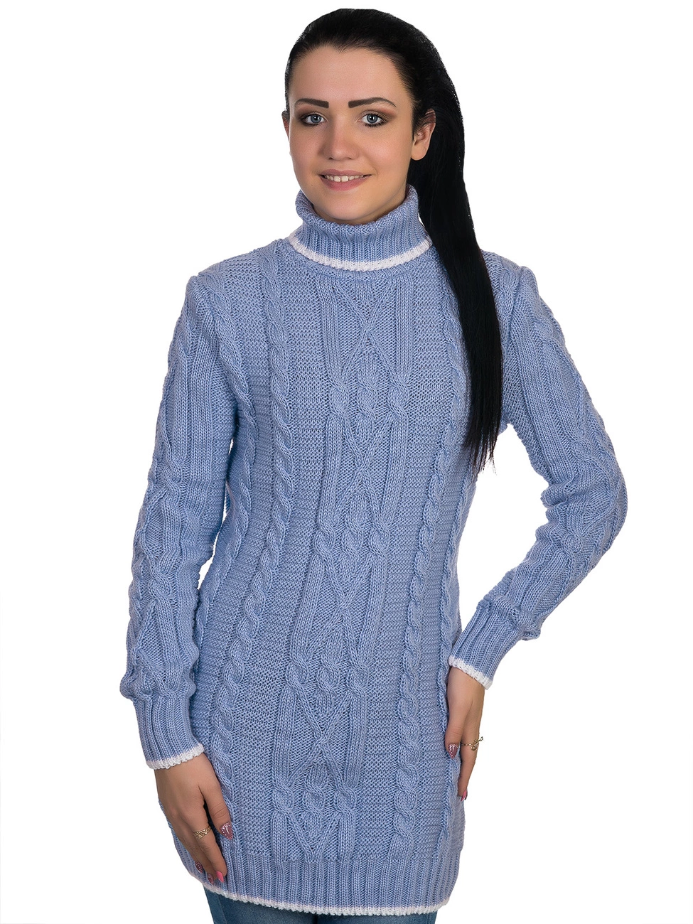 ТЕПЛАЯ ТУНИКА ПРЯМОГО СИЛУЭТА, ДОПОЛНЕННАЯ КОНТРАСТНОЙ ОТДЕЛКОЙ-КАНТОМ. ВЫСОКИЙ ДВОЙНОЙ ВОРОТНИК-СТОЙКА, МАНЖЕТА ДЛИННОГО РУКАВА И НИЗ ИЗДЕЛИЯ РЕБРИСТЫЕ.