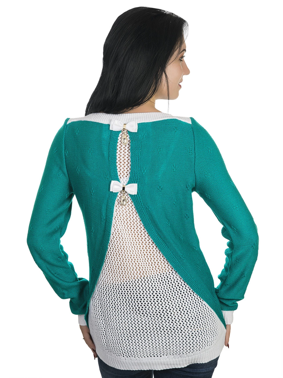 очаровательными бантиками с металлическими подвесками. Горловина