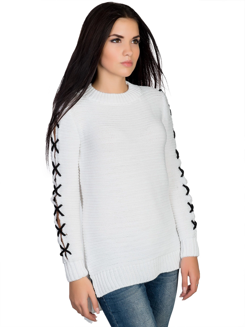 Стильный вязаный джемпер полуприталенного силуэта. Рукава,