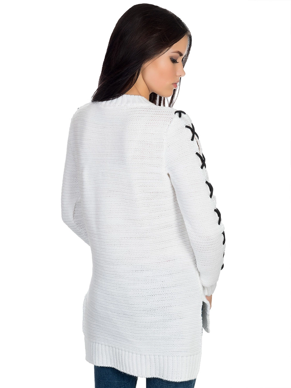 Сзади изделие немного длиннее, чем спереди. Рукава по бокам