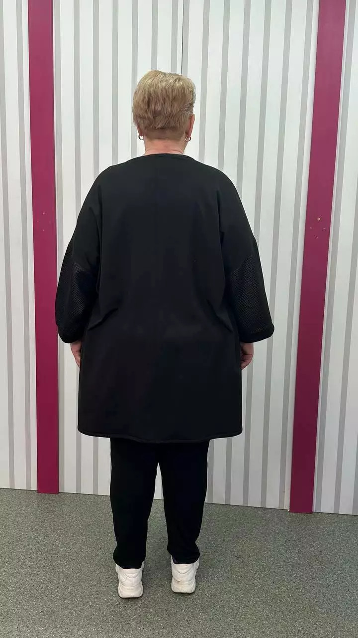 Об'єм грудей 130-140; Об'єм талії 130; Об'єм стегон 140; лінія рукава 65; Ширина рукава 54; Довжина виробу 90;