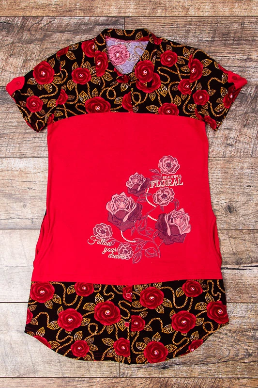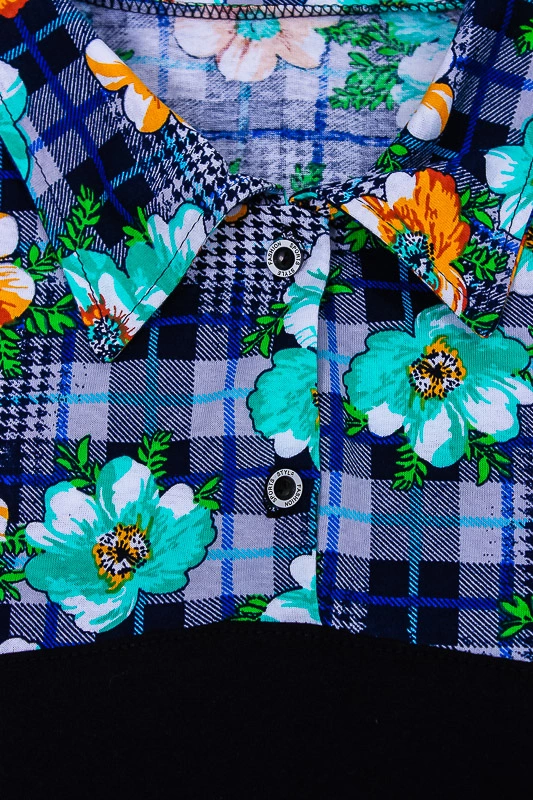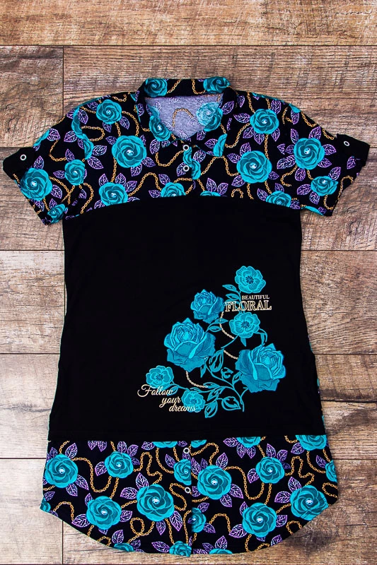 Туніка-сорочка - обов'язкова річ в гардеробі кожної сучасної дівчини. Модель виконана в комбінації набивного реактиву і однотонного куліру. Виріб з коротким рукавом і з сорочковим коміром. Застібається на кнопки. Прикрашена потайними кишенями для зручності. А квітковий принт, який часто асоціюється з літом і сонцем в одязі це стильно і сучасно. У цій туніці вам буде комфортно і легко рухатися. Прекрасно поєднується з брюками або трессами.