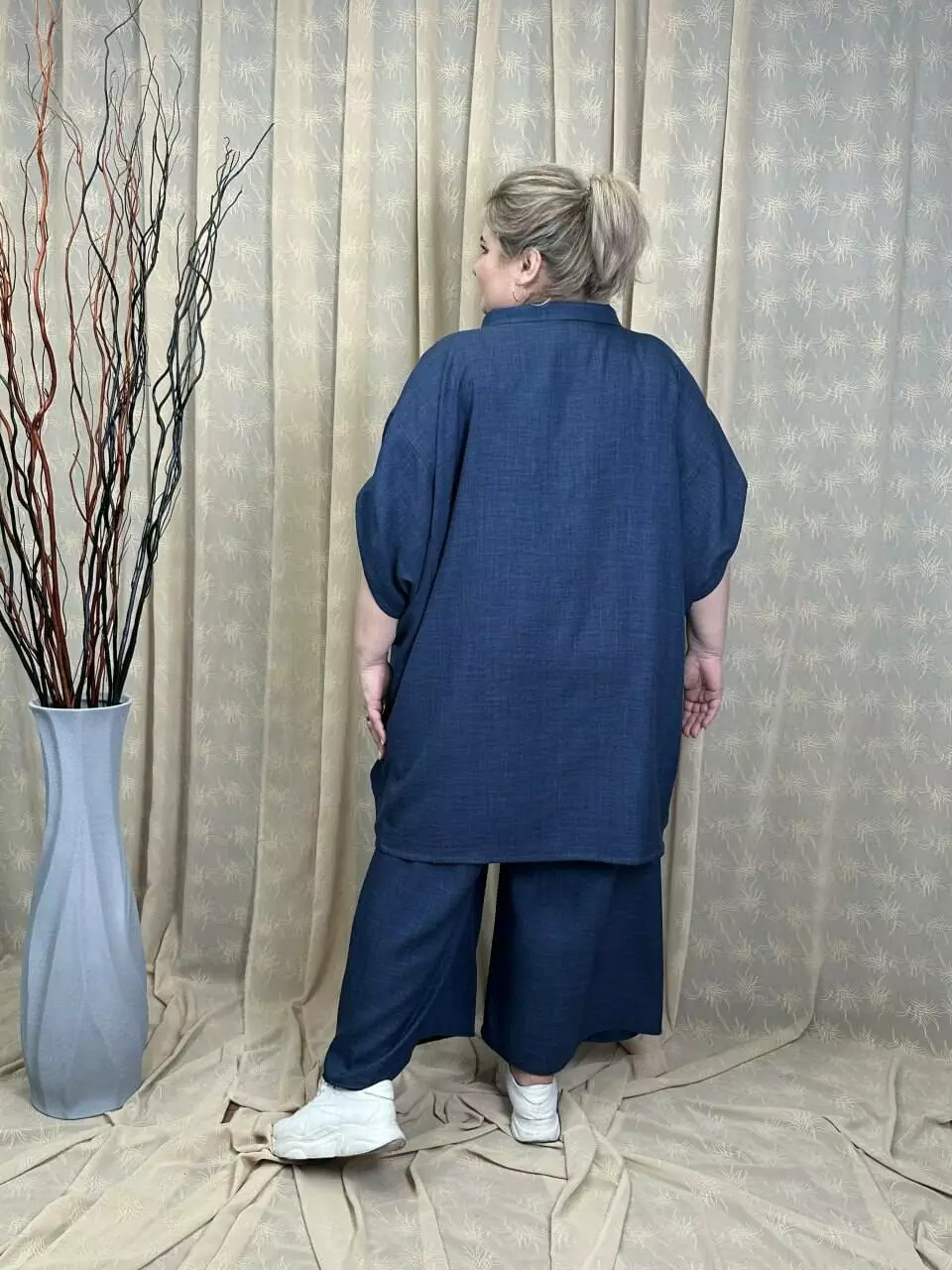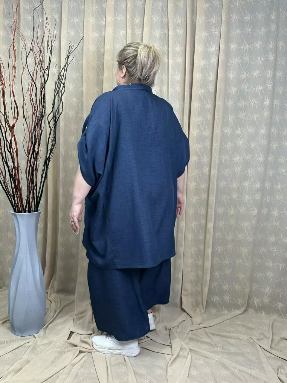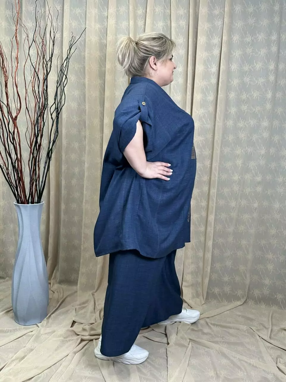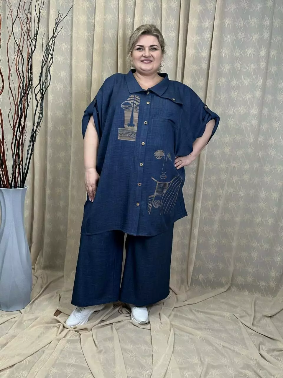 Тканина льон-бохо дуже м'яка та легка. Застібка на ґудзиках, довжина рукава регулюється патиком, прикрашена якісним накатом.