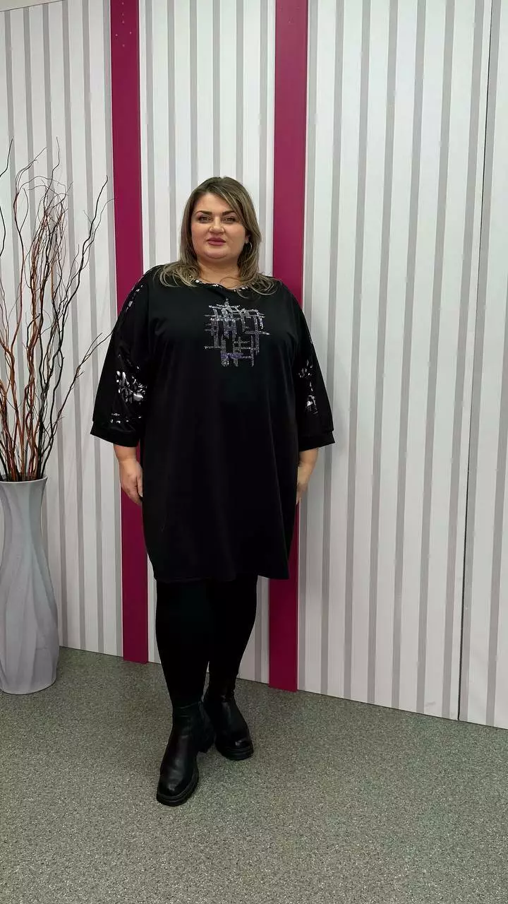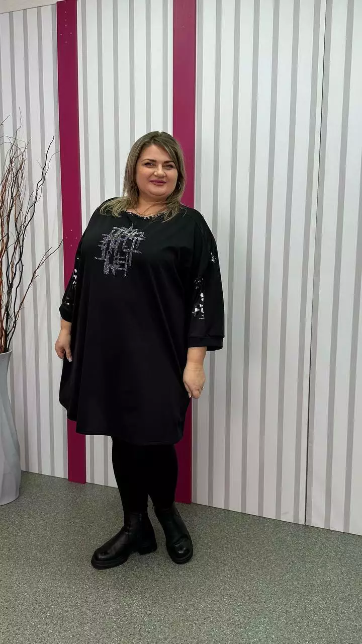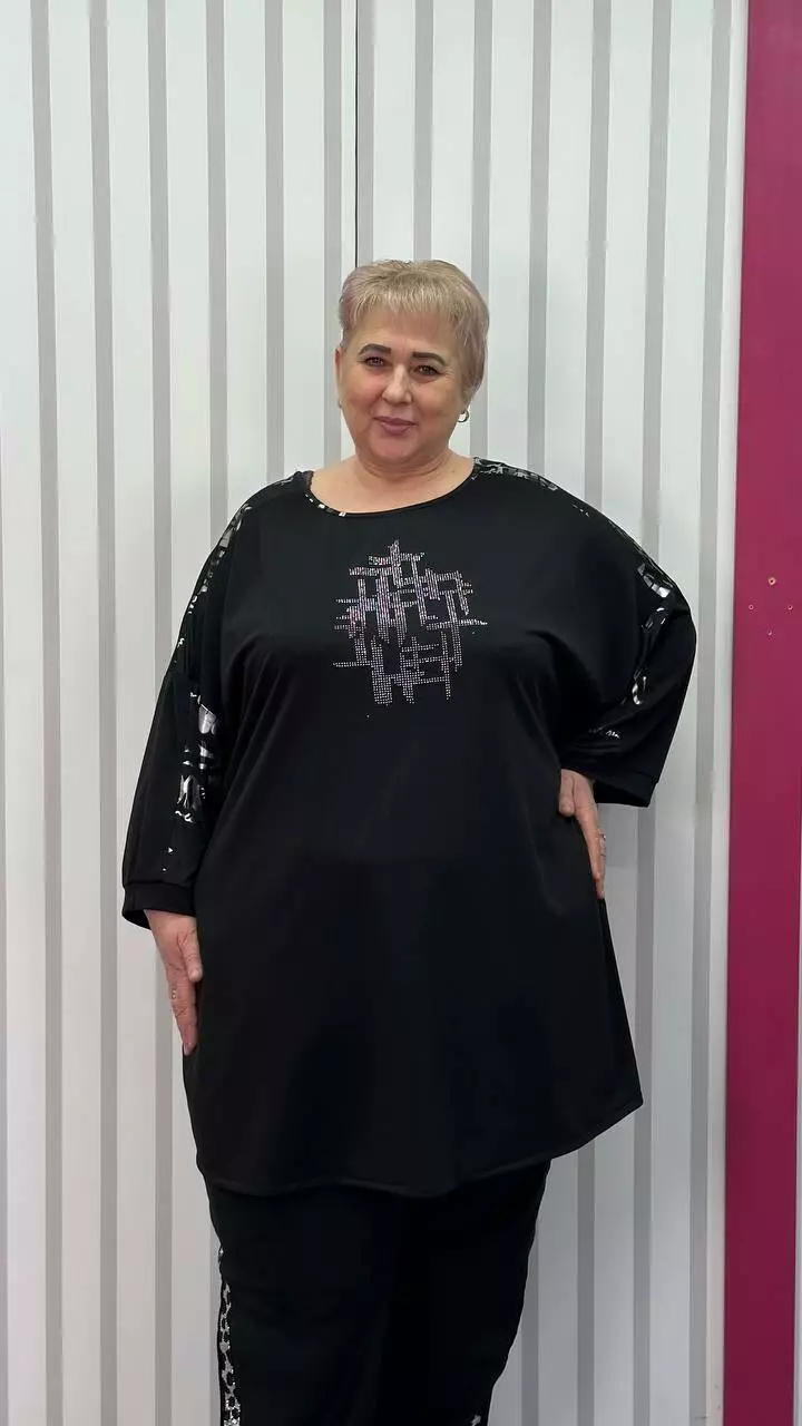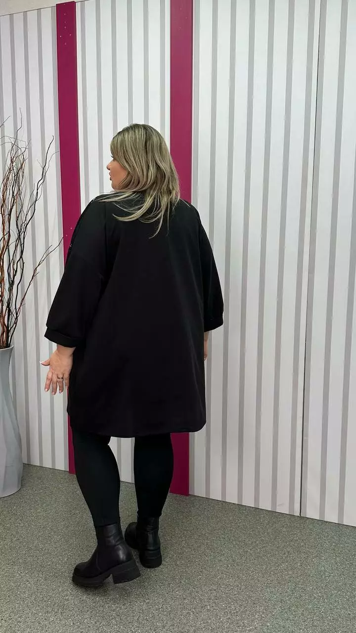 Туніка вільна комбінована "Сандра-2" чорна зі сріблом 58-60 62-64 66-68 70-72 74-76