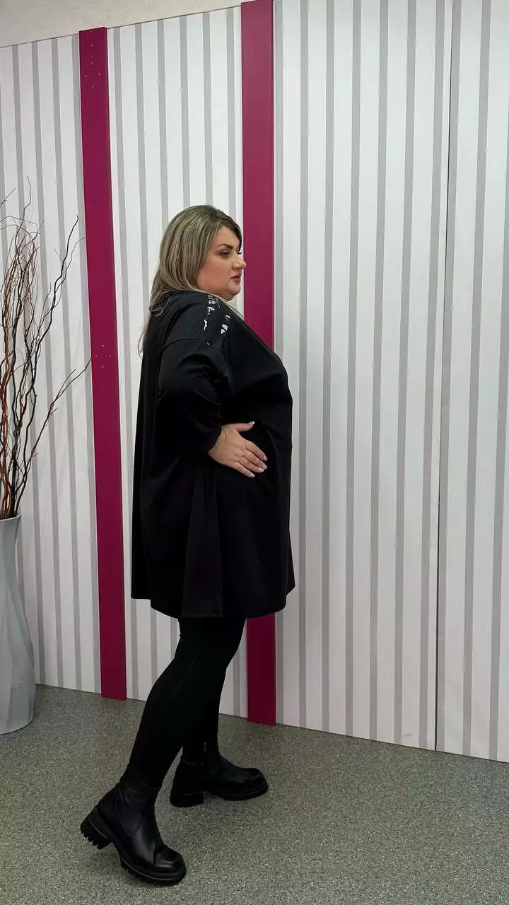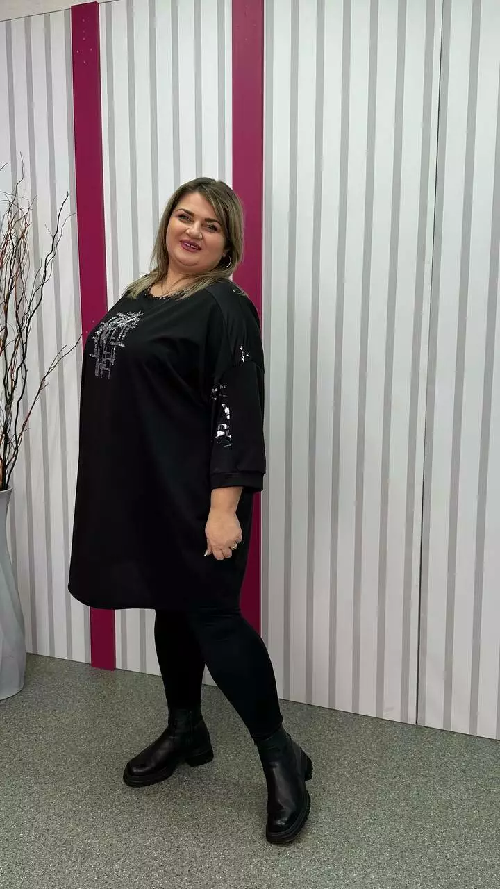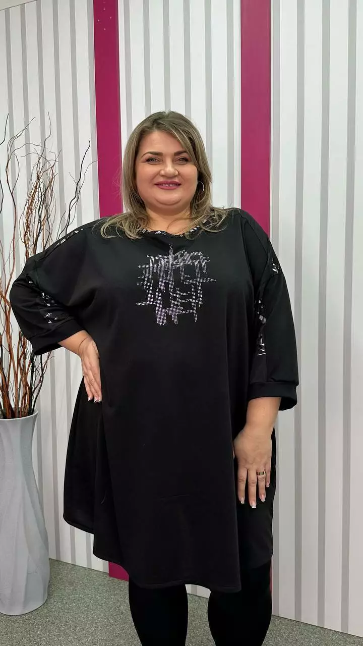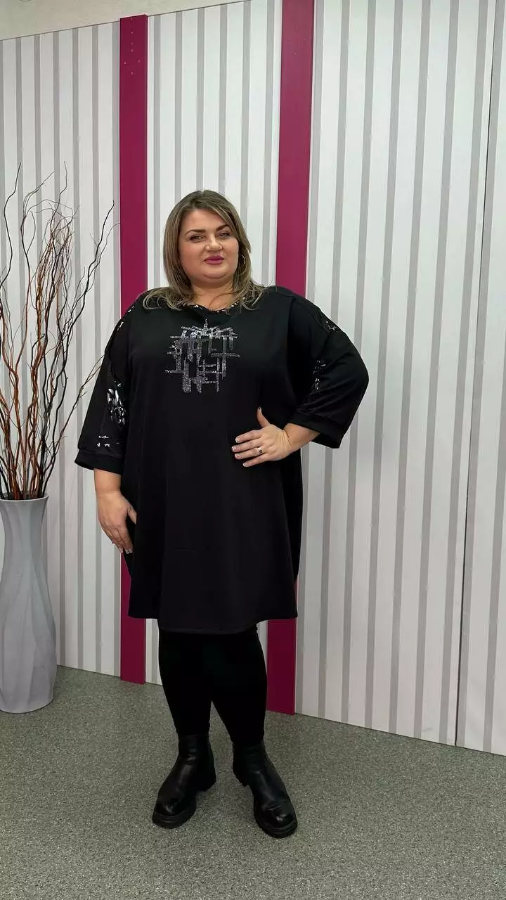 Туніка вільна комбінована "Сандра-2" чорна зі сріблом 58-60 62-64 66-68 70-72 74-76