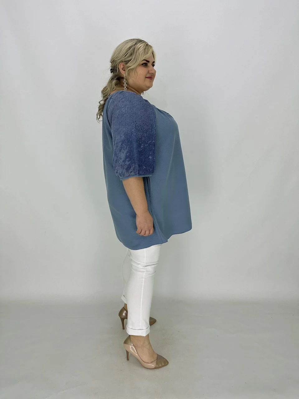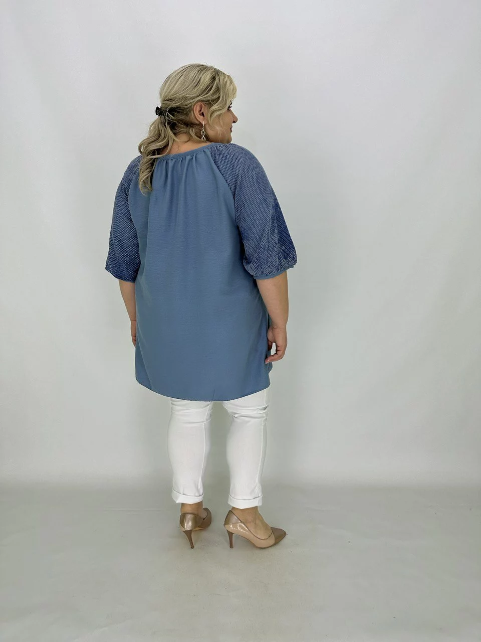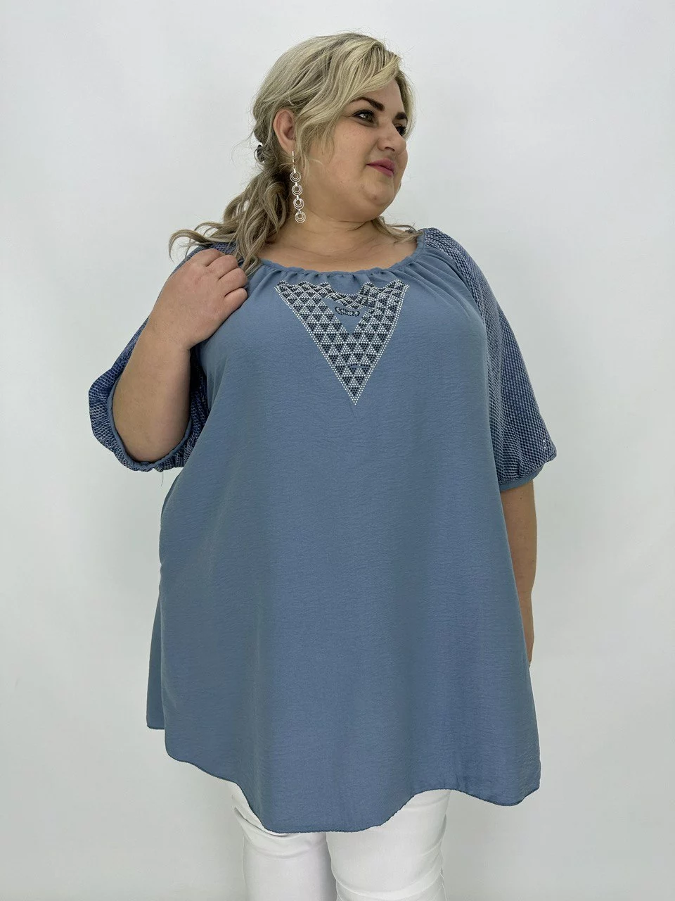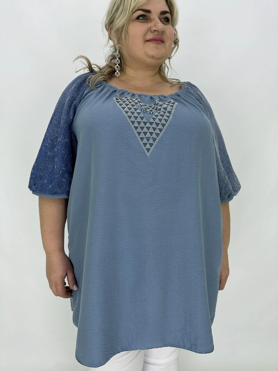 Туніка вільного крою, прибрана по горловині, рукав подвійний
