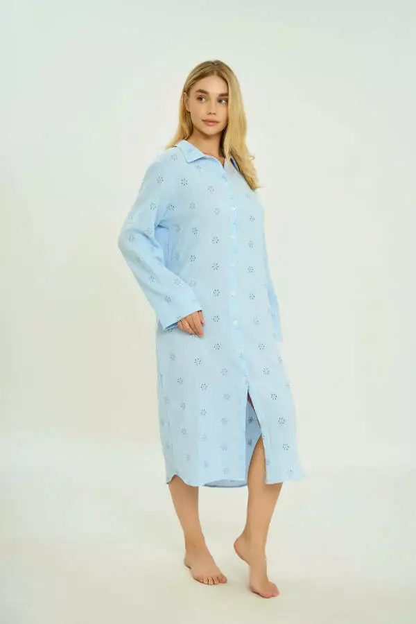 Туніка жіноча з муслінового шиття в блакитному кольорі — це витончений вибір для створення легкого та стильного образу. Виготовлена з натурального мусліну, вона забезпечує комфорт і приємні відчуття на шкірі, ідеально підходячи як для літніх прогулянок, так і для пляжного відпочинку.