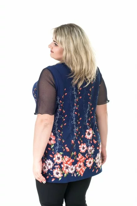 Тканина: масло - ​​70% поліестер; 20% віскоза; 10% еластан. Красива туніка напівприлеглий силует. Рукав, кишені та горловина вирощені із сітки. Кишені накладні, горловина кругла, рукав короткий. Розміри :
