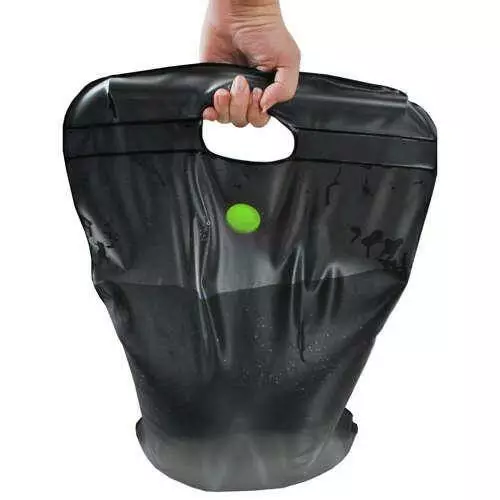 Душ виготовлений із міцного пластику. Завдяки чорному покриттю воно добре вбирає світло, а вода швидко нагрівається на сонці. Істота водонепроникна, а щільні заглушки та клапан забезпечують безпечне зберігання душу, наприклад, у сумці. Вода нагрівається сонцем.